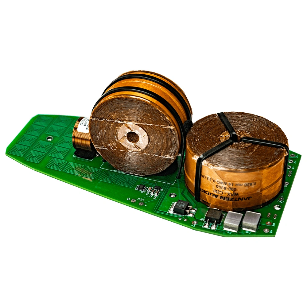 - Crossover PCBs embed traces of their signature active square Tesla circuits.