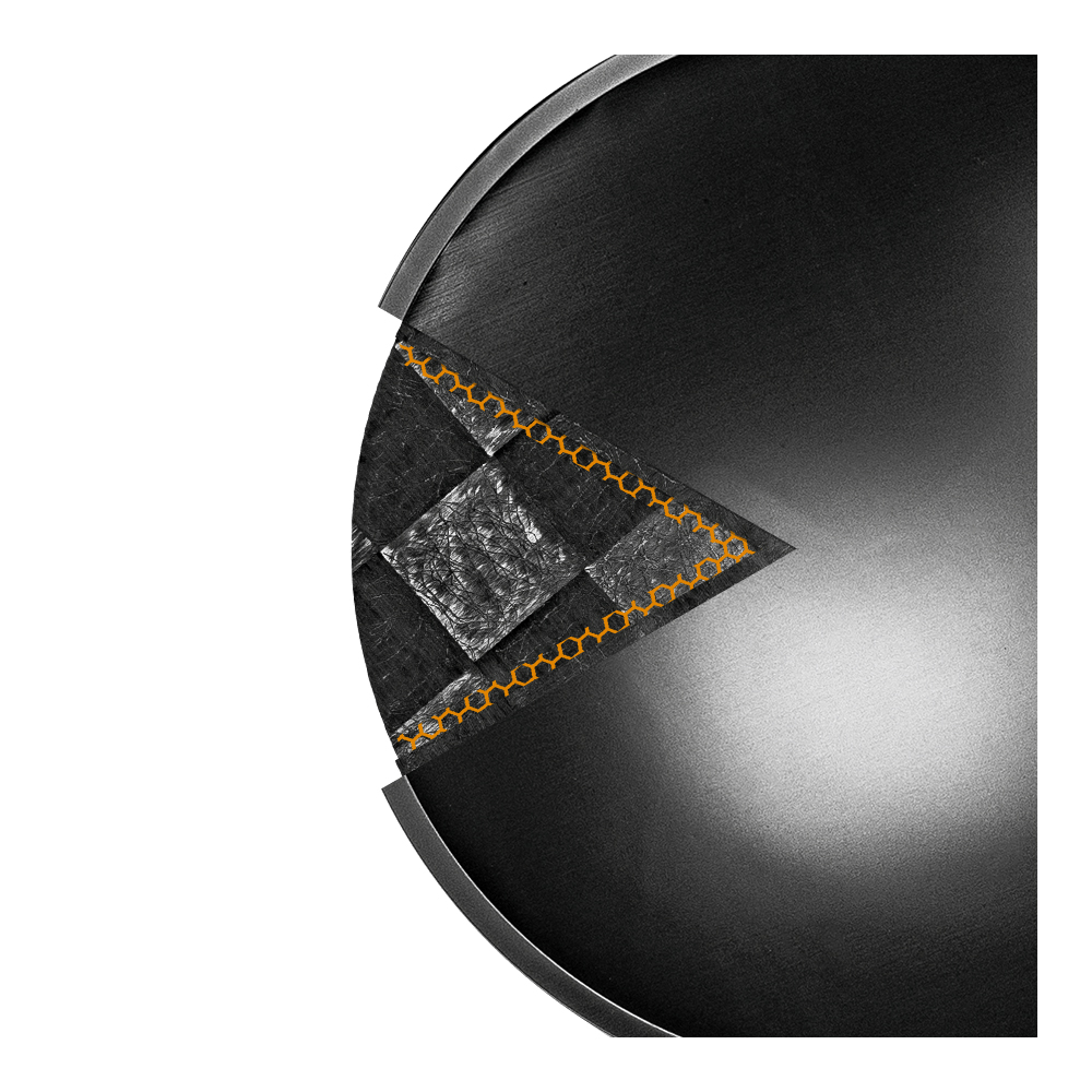 The result is a membrane that consists of four skins laminated into a single unit: two layers of spread tow carbon fiber, a layer of aramid honeycomb spacers in between, and a titanium skin with Ansuz Supreme coating. The combination of all these materials give this state-of-the- art membrane its unique properties. Spread tow carbon fiber is designed to ensure a skin with optimum stiffness in many different directions. This unique haracteristic reduces sound disturbing vibrations and resonances to an unprecedentedly low level. This is also true for resonances in the frequency range above 8 kHz. Since the membrane/driver is used up to the 2.5 kHz range, disturbing resonances have been shifted two octaves outside the effective frequency range, ensuring an absolute minimum of resonances.