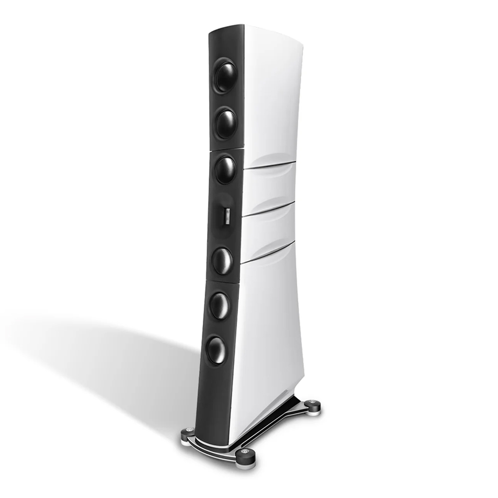 Elaborate finite element methods have been applied to linearize and optimize the magnetic flux field, to facilitate driver movement and to ensure high efficiency and outstanding linearity. The efficiency of this closed ribbon tweeter amounts to an exceptional 94dB and operates from approximately 2.5 kHz upwards. The moving mass is extremely low at 0.01 grams. The totally concealed tweeter has the capacity to operate at an incredible speed, which is an absolute prerequisite to unlocking the most subtle and refined sound details of any kind of music. The enormous robustness of this tweeter allows it to handle extremely high transient peaks without any ear fatiguing breakups. No transformers are being used.