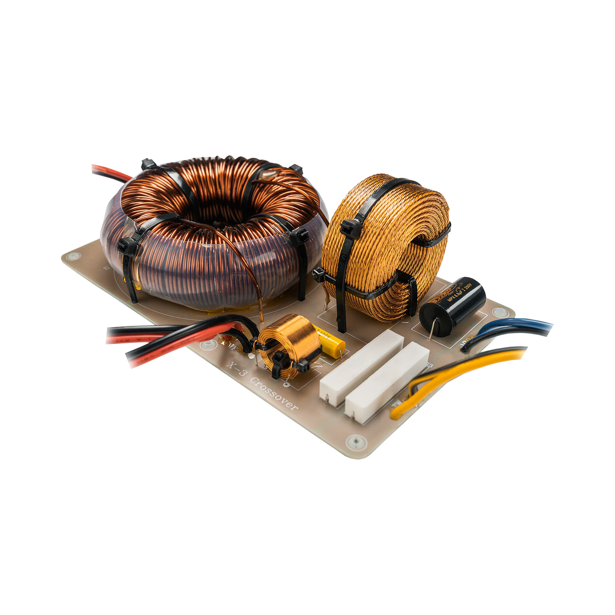 Borresen X6 is equipped with a parallel crossover built from the same high-quality components as in the Z series. This makes the crossover very mechanically stable and minimizes its self-resonance.