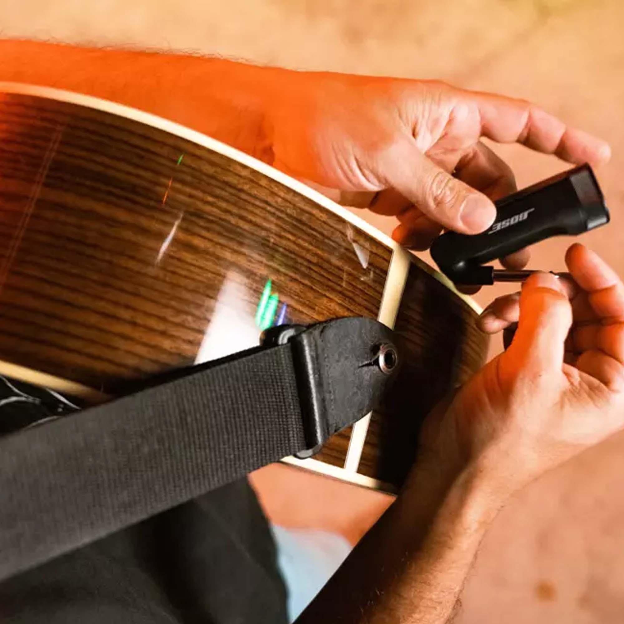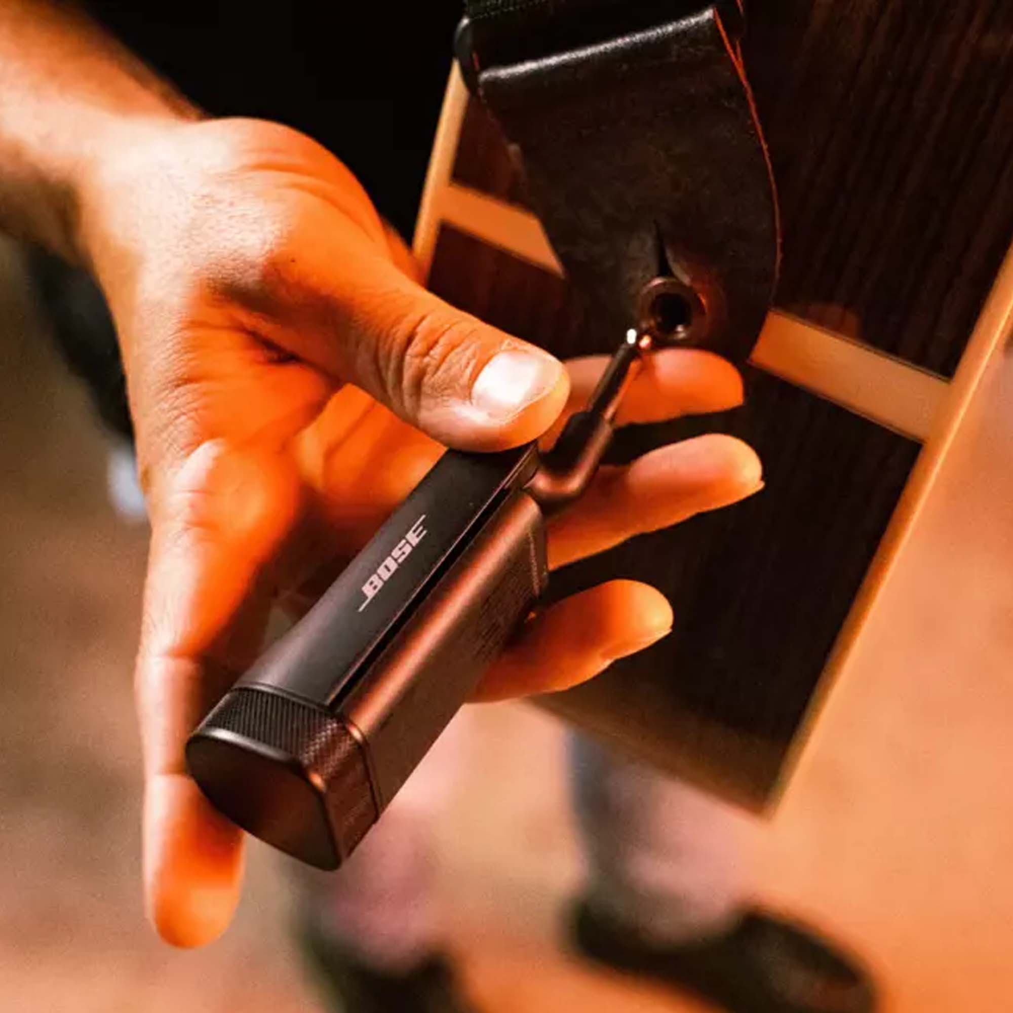 ¼” Wireless transmitter for guitars, keyboards, and other instruments. Skip the cables and connect to your amp, wire-free. Get to playing faster by leaving your cables behind with a ¼” wireless transmitter for guitars, keyboards, and other instruments. It pairs effortlessly with the wireless RF receiver integrated into the S1 Pro+ and uses a 2.4 GHz frequency for reliable wireless connection up to 30 feet. Up to 4 hours of battery life. When not in use, the transmitter stores neatly inside the speaker to charge. Pairs effortlessly with the wireless RF receiver integrated into the S1 Pro+ PA speaker. The perfect match for the most seamless experience.