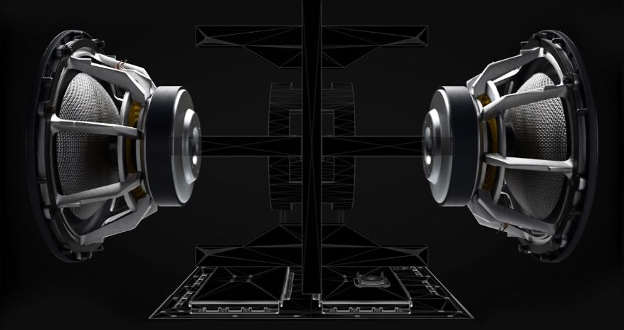- Two oppositely located 8-inch woofers with Aerofoil diaphragms