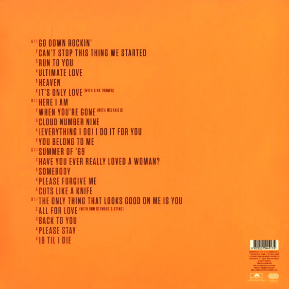 Ultimate is a new compilation of hits by Bryan Adams released in 2017. The release is on double vinyl and includes two new tracks.