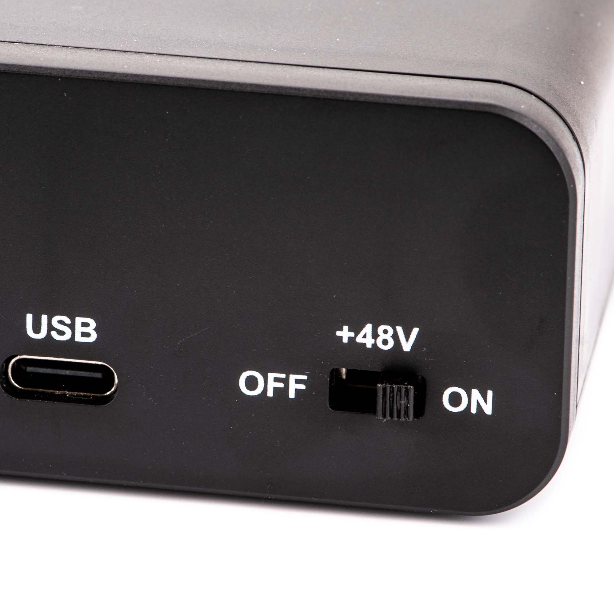 Support for +48V phantom power allows you to use studio condenser microphones directly, without external power supplies. The interface itself is powered entirely by USB, without the need for an additional power source - you can connect it to your laptop and start recording right away.