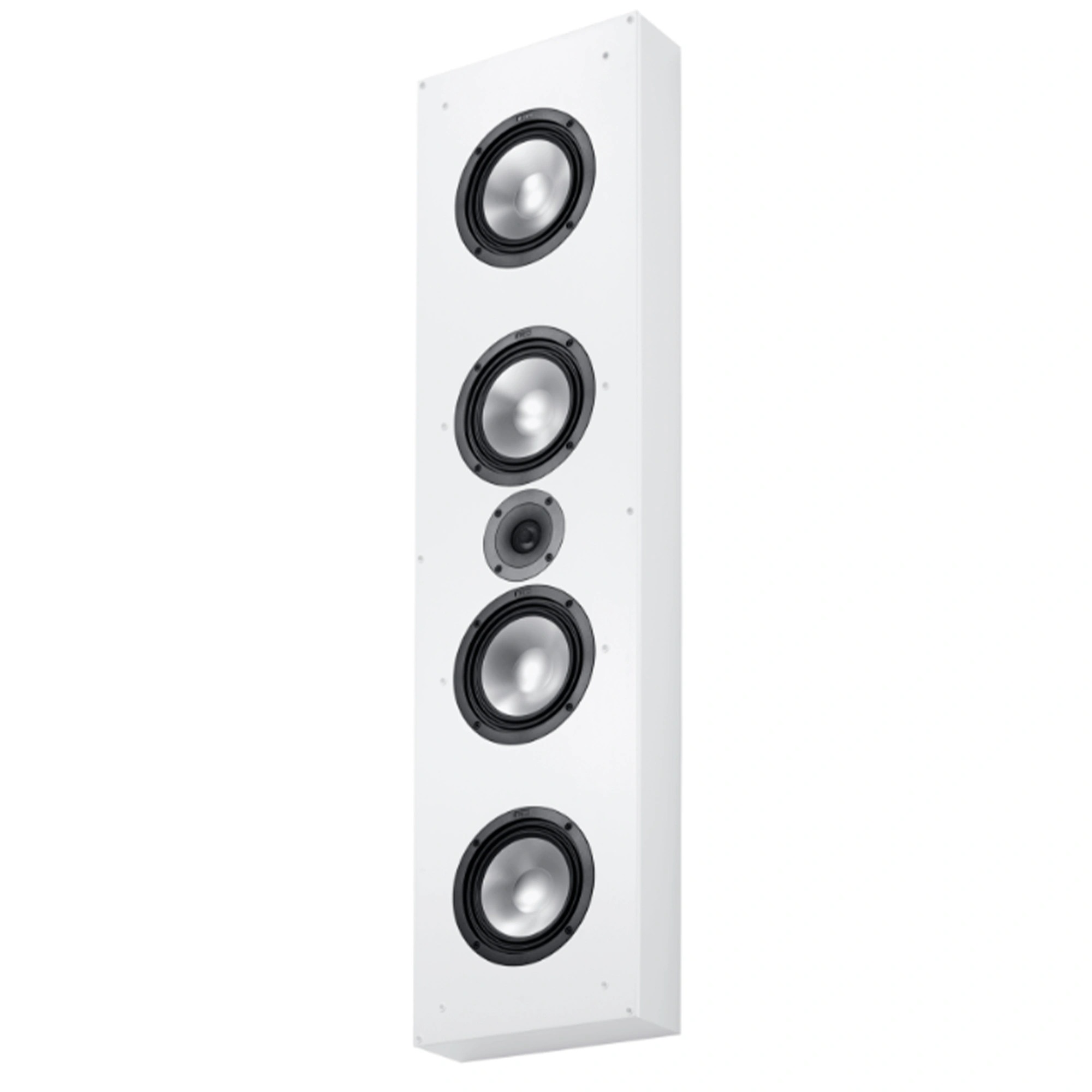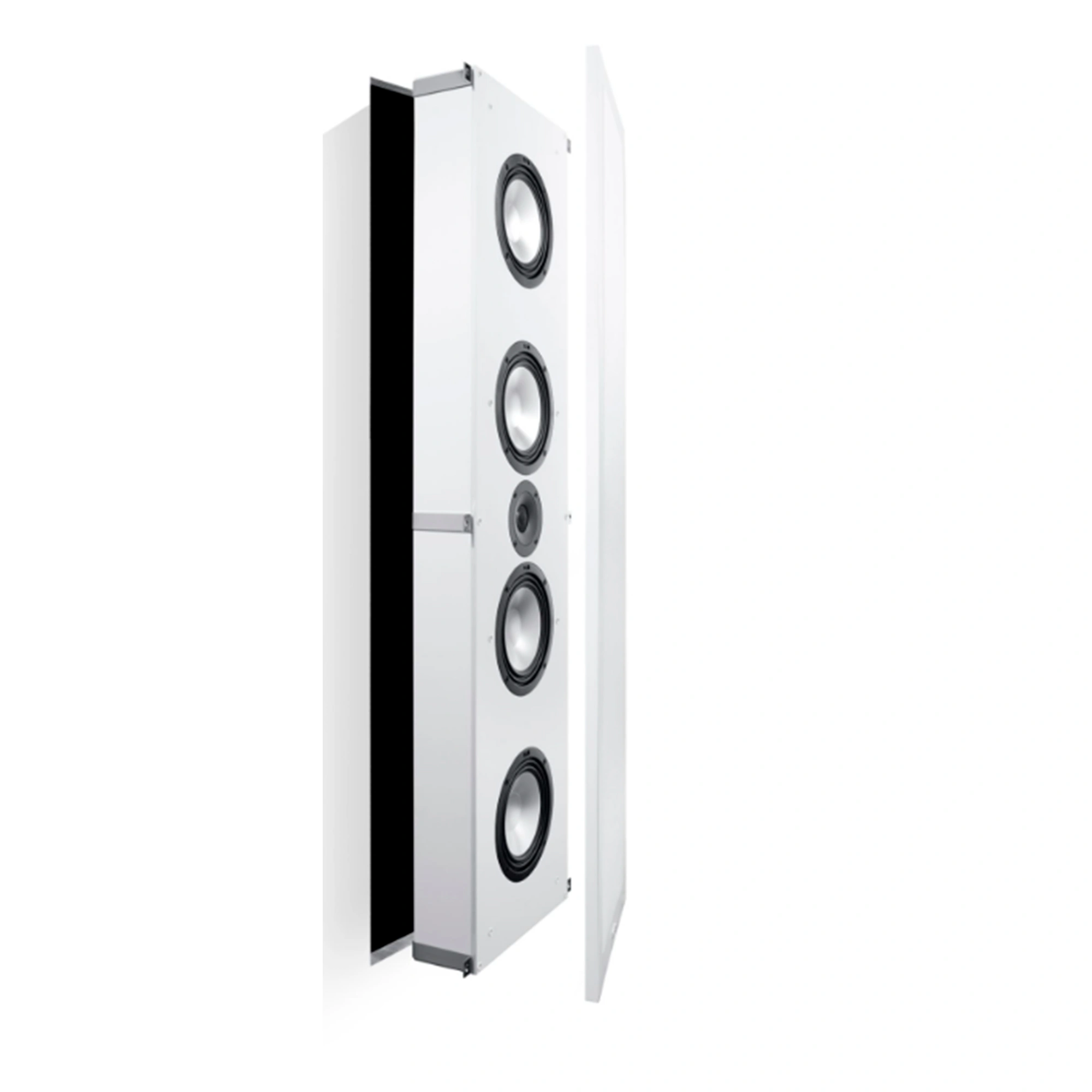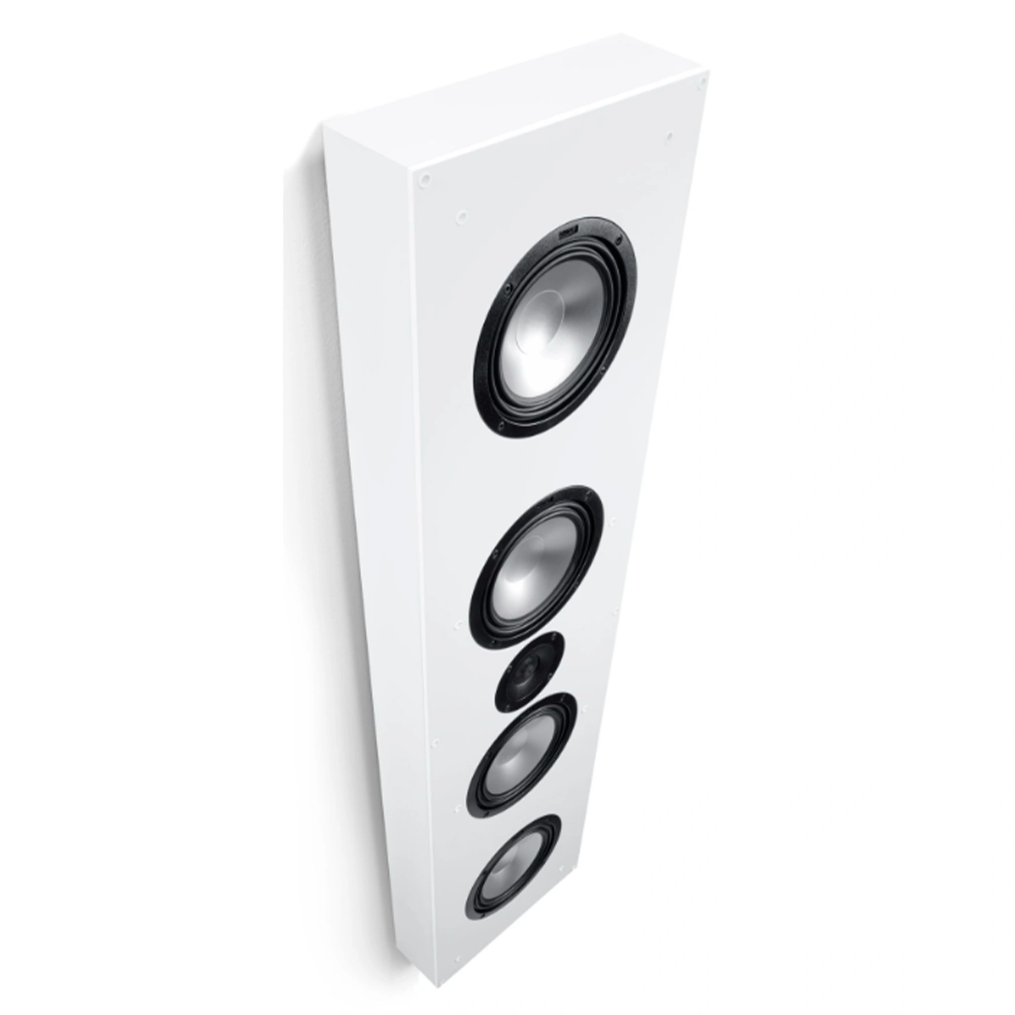 Just ten centimeters deep is our largest wall speaker from the Atelier family. The flagship Atelier 1100 can be operated inconspicuously on or in the wall due to its flat housing and convinces from there with its balanced sound image. The InWall / OnWall speaker delivers pure dynamics through its two 174 mm woofer drivers with aluminum cones. Powerful magnet drives in combination with the suspension in the multiple folded wave surrounds guarantee a deep bass reproduction, which is effectively supported by the two 174 mm passive membranes. Our proven 25 mm tweeter with aluminum manganese dome complements the dynamic play with finely resolved highs. The wall brackets integrated in the housing makes mounting on the wall particularly easy. With the included installation kit, the Canton Atelier 1100 can alternatively be integrated into the wall. The speakers then stand out from the wall by just two centimeters - it hardly gets any flatter or more discreet than that.