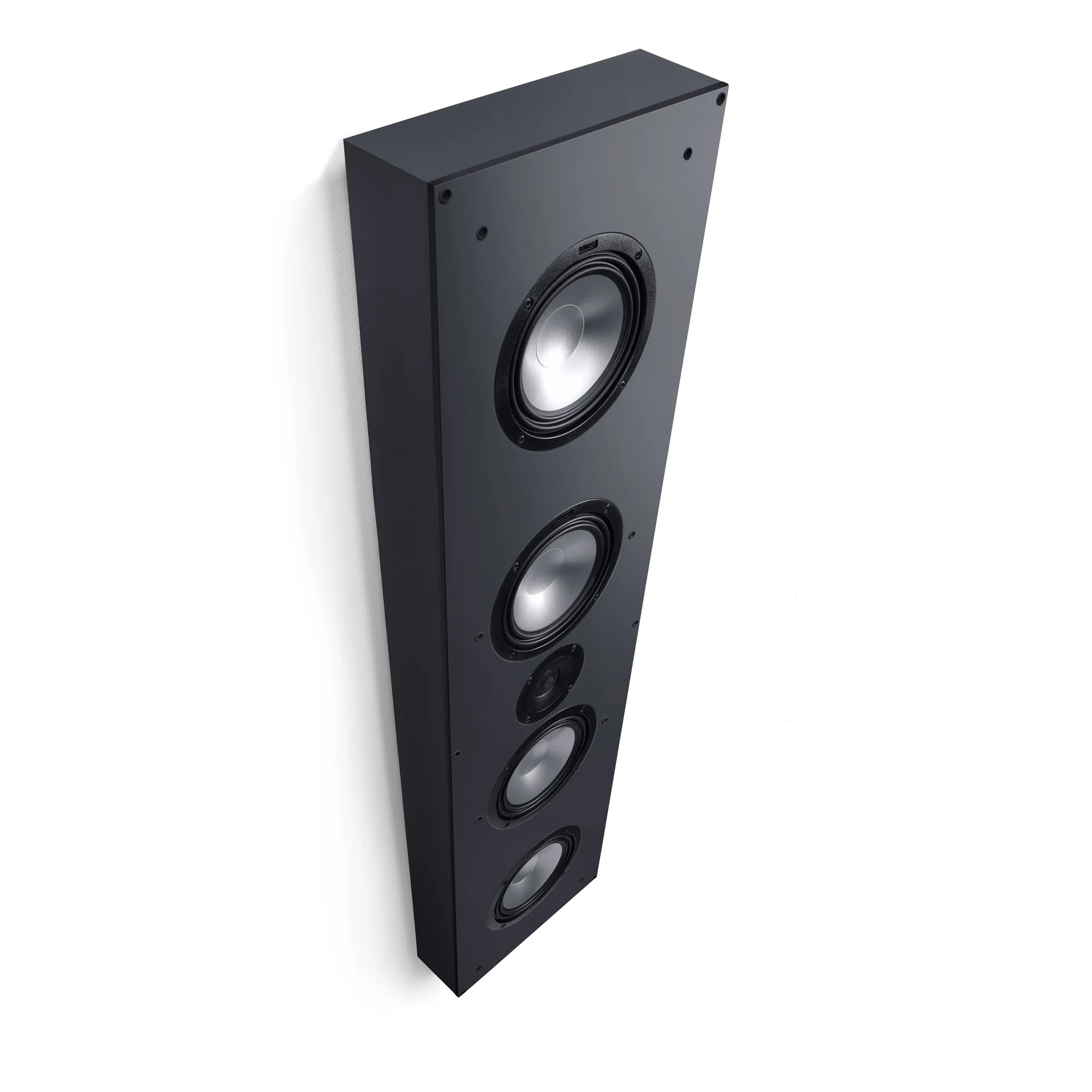 Thanks to the slim design, Atelier series speakers can seamlessly blend into walls with any design. The installation is very simple due to the built-in wall bracket.