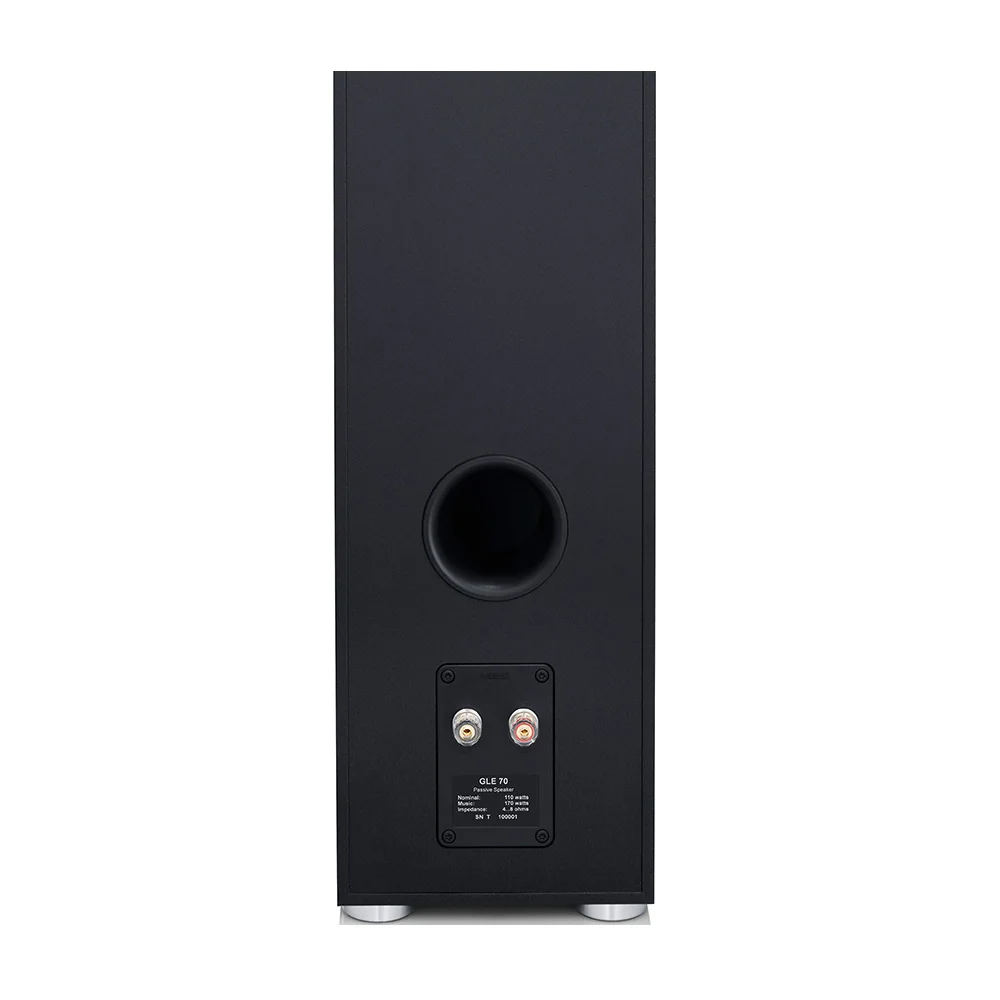 The 2.5-way GLE 70 speaker system has a modern design. Its compact size allows the system to be harmoniously integrated into almost any interior. A decorative feature of the current GLE series is the black fabric grilles that attach to the front panel with magnets. Their rounded corners add attractiveness to the floor-standing speakers.