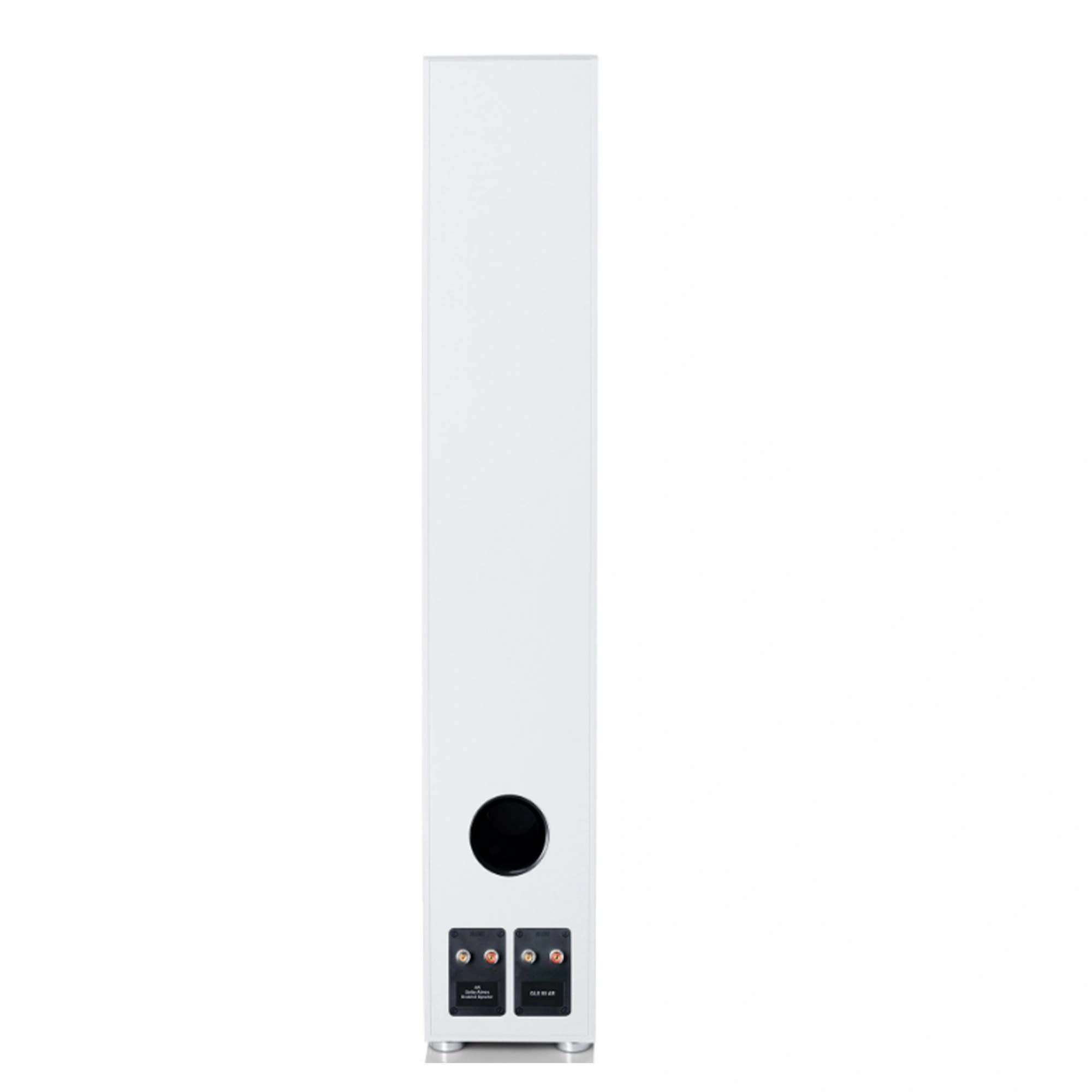 An ornamental feature of the current GLE series are the black or white fabric covers, which are magnetically attached to the baffles. They are generously rounded at the corners, giving the floorstanding speakers an independent, attractive face. The well-proportioned GLE 100 floorstanding speakers are 116 centimetres high, with a width of only 24 centimetres and a depth of 40 centimetres. Four feet integrated into the bottom of the cabinet ensure a firm footing on the floor.