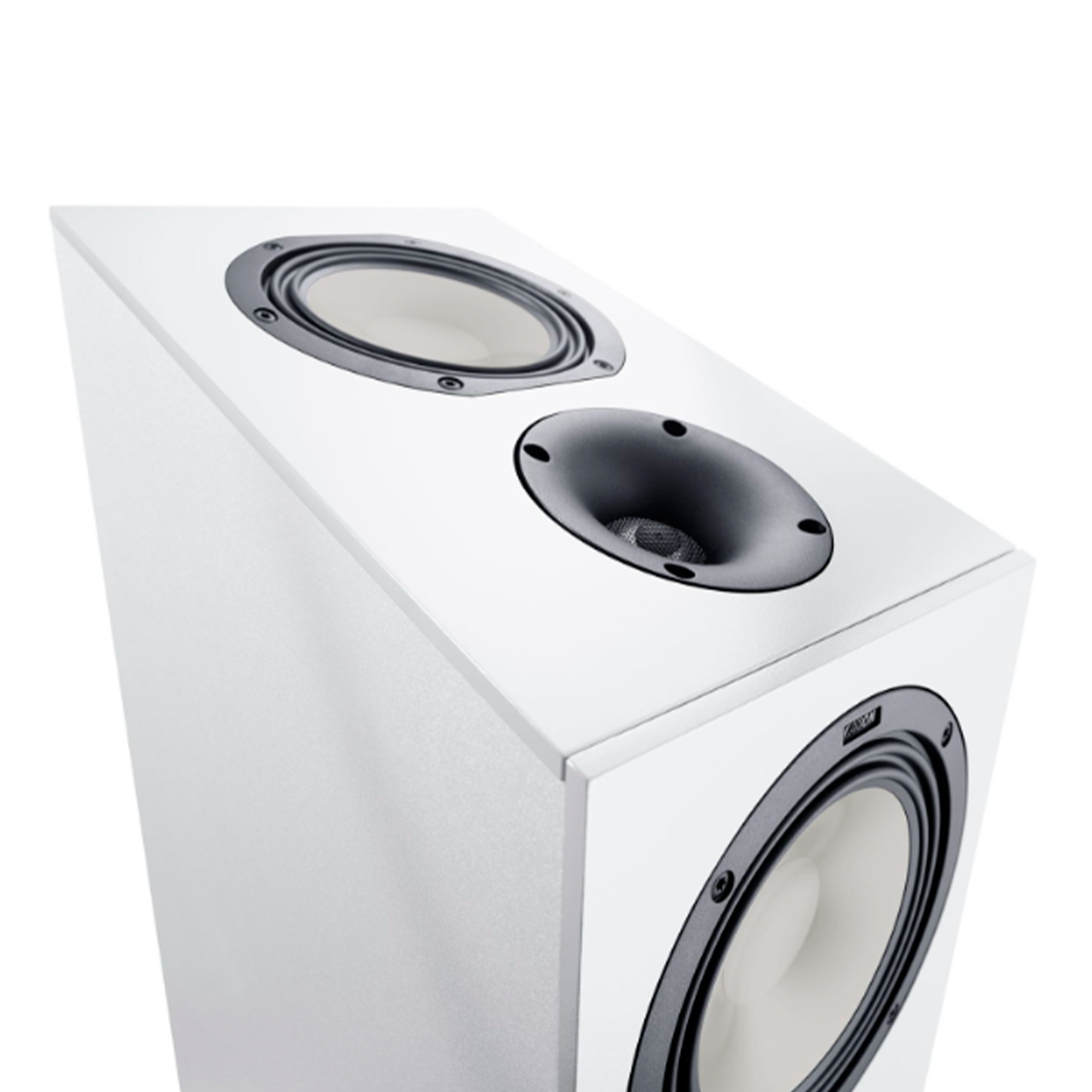State of the art. Striving for the best sound means a lot of hard work and the use of the latest technologies. Our GLE speakers, which have been redesigned both visually and technically, benefit from the progress we are constantly making in speaker development. Precise, powerful bass is the domain of the two 192 mm woofers, which deliver phenomenal low bass in the voluminous bass reflex cabinet. Instead of the previous drivers with aluminum diaphragms, woofer specialists with highly stable titanium diaphragms are now in use: these can follow fast music impulses even more precisely.