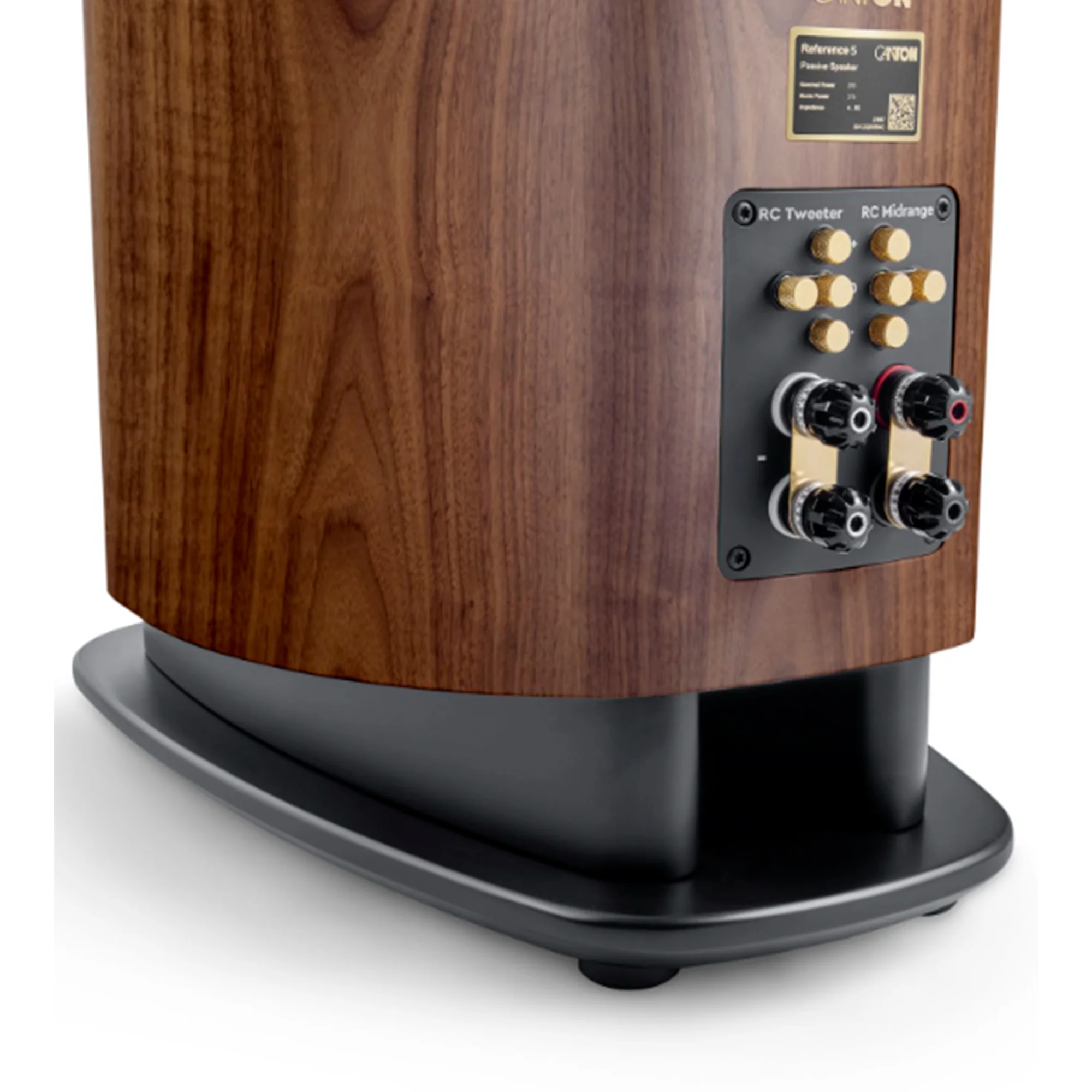 The Reference 5 speakers are equipped with high-quality WBT nextgen™ connectors and allow bi-wiring and bi-amping. These connectors are the basis for excellent sound quality and provide long-term stable contact. If you do not want to use the bi-wiring or bi-amping mode, high-quality hard-gold-plated copper bridges are included. The Reference 5s feature controls on the speaker terminal for Canton's RC (Room Compensation) technology. With this level adjustment, the sound pressure levels of the midrange and tweeter can be sensitively adjusted in 1.5 decibel steps. This allows the speakers to be optimally adapted to personal listening tastes and room acoustics.