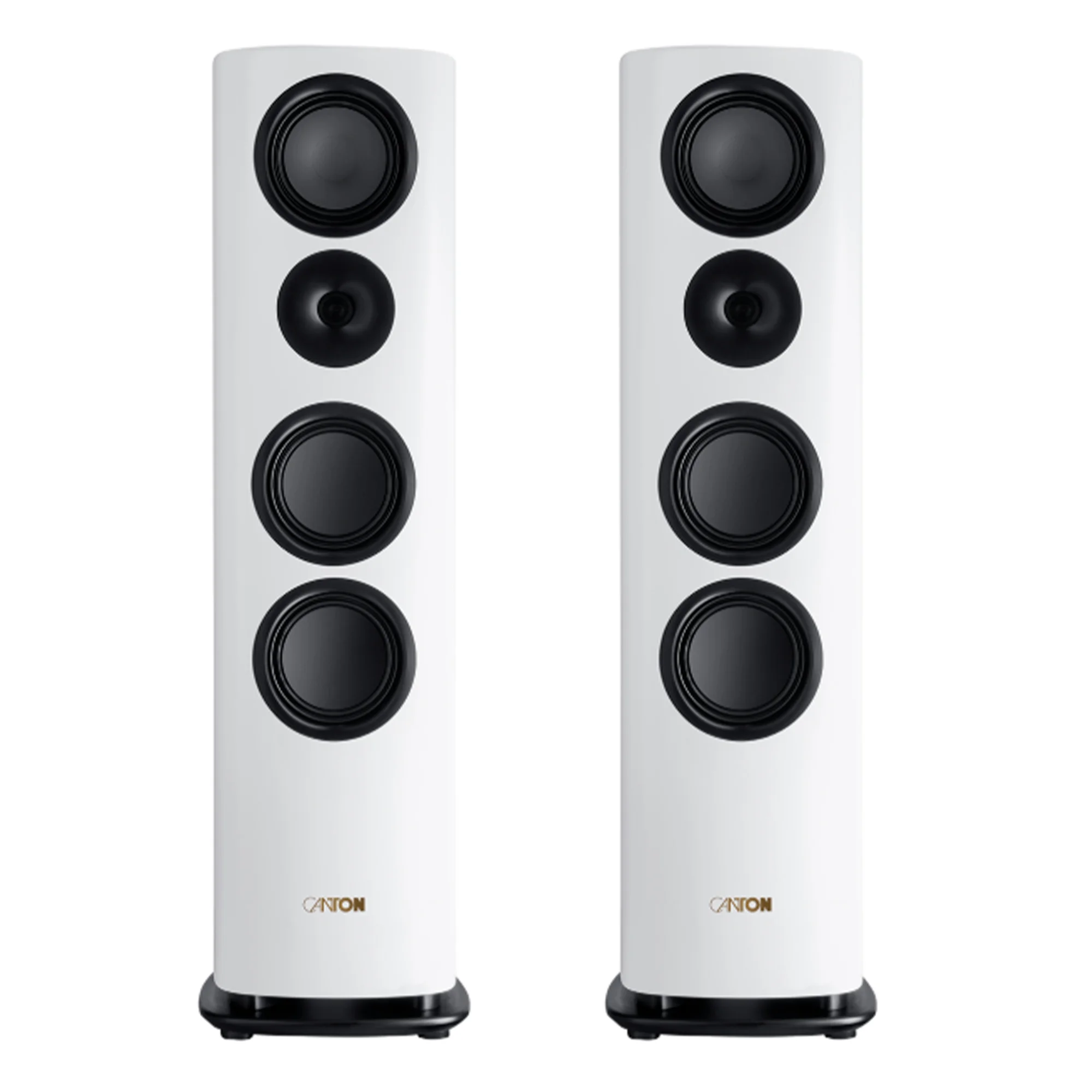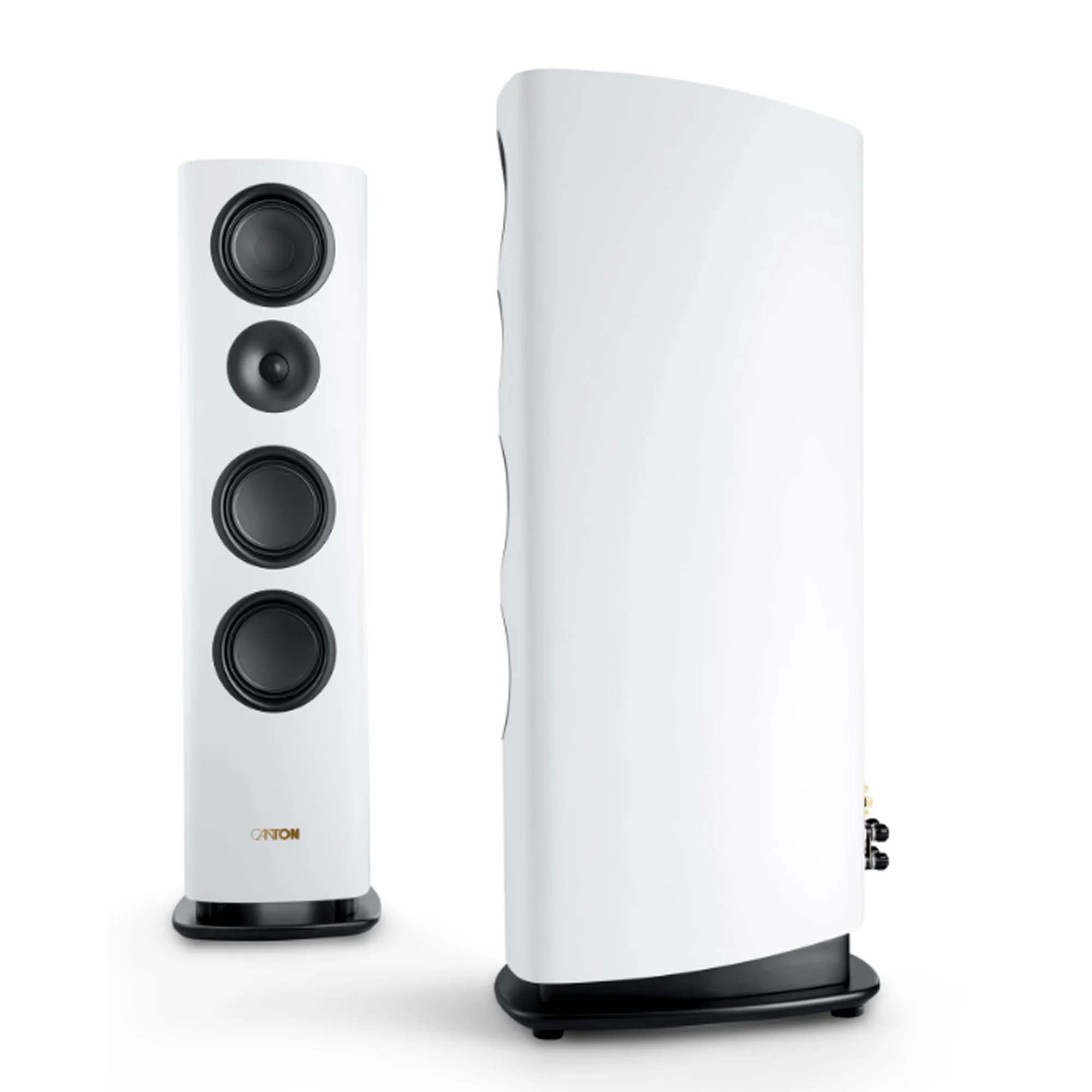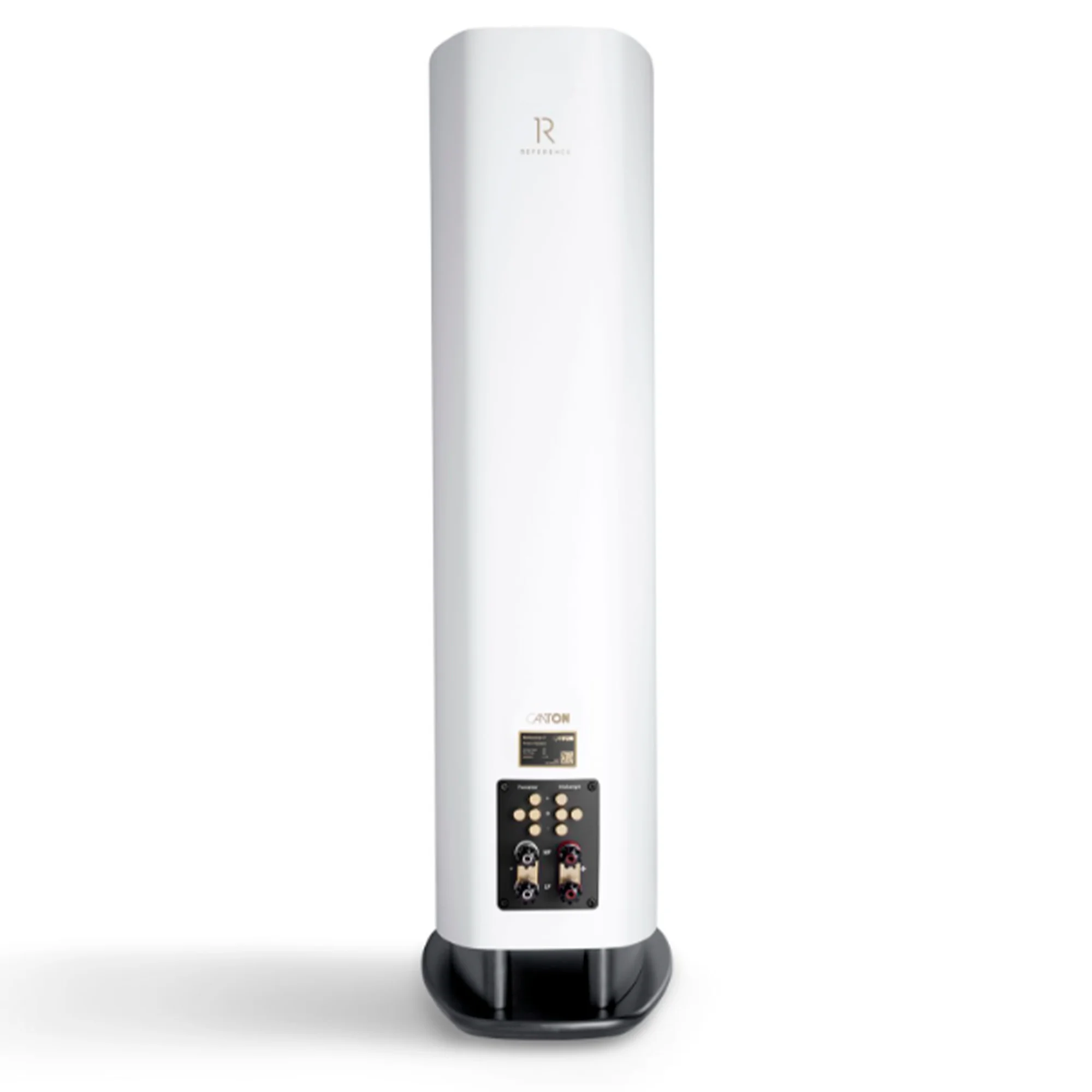 The new Reference 7. Pure aesthetics, breathtaking performance - as the slimmest floorstanding speakers in the Reference series, the Reference 7s blend harmoniously into any room. Despite their compact size, the speakers impress with deep bass response and high dynamics. This is made possible by the precisely tuned cabinet with bass guide that uses the two woofers with black ceramic tungsten cones. The Reference 7 uses our highest quality BC and BCT drivers on the round baffle. They are elegantly covered by intricately crafted, screwless adapter rings. As in all Reference models, they are designed as asymmetrical wave guides to perfect the sound dispersion of the speakers. All models in the Reference family are manufactured in Germany with the highest quality and precision. The slim 3-way Reference 7 floorstanding speaker impresses with its perfectly formed design and offers long-lasting pleasure in music reproduction thanks to high-quality materials, first-class components and the latest Canton technologies.