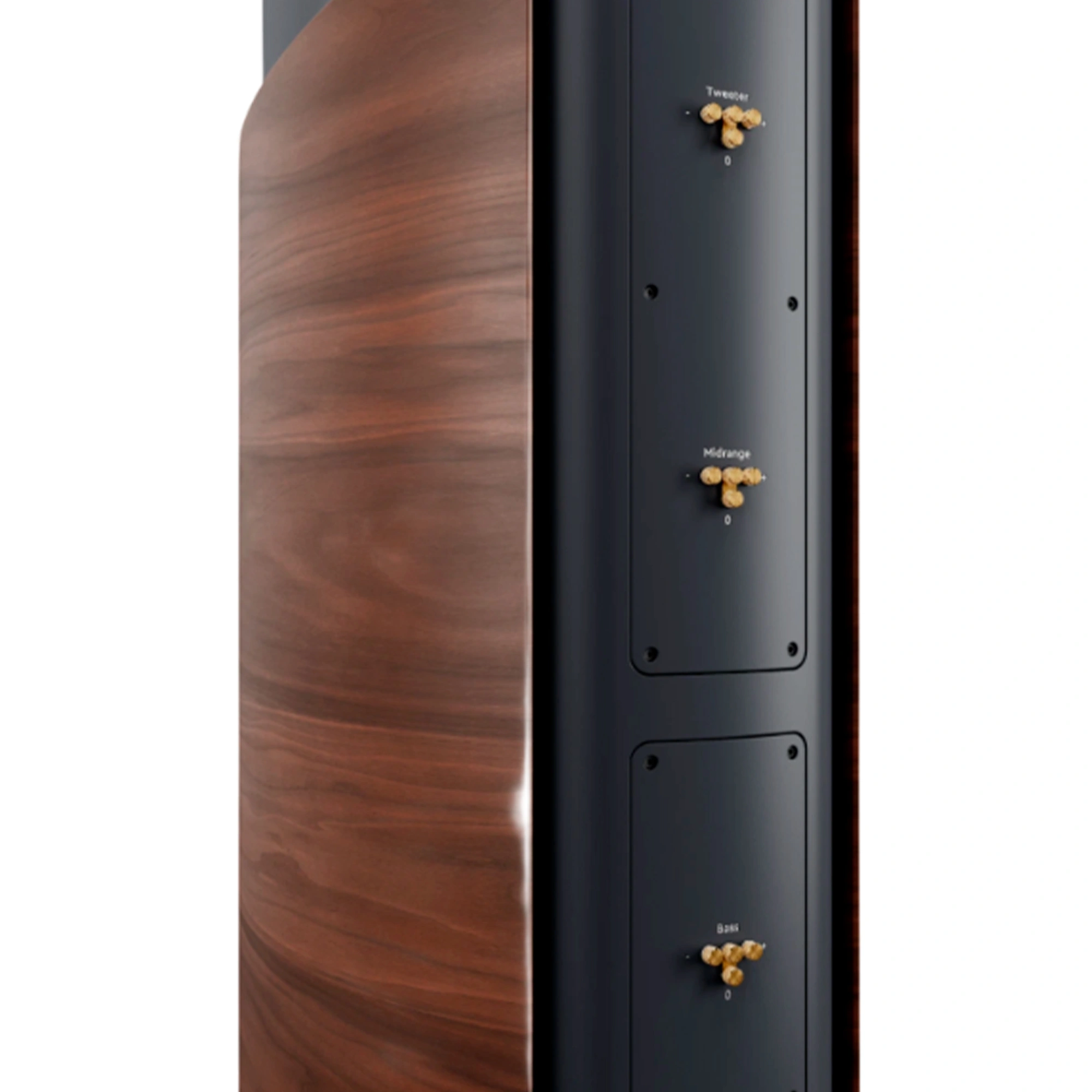 The elegant, curved design of the Reference Alpha combines aesthetics and functionality. The curved side panels, made of multi-layered wood, provide exceptional stability and minimize resonance. Finished with a high-quality blend of materials, they harmoniously blend into the overall concept. Acoustically optimized curves prevent reflections from the edges and give the speakers an impressive yet timeless look.