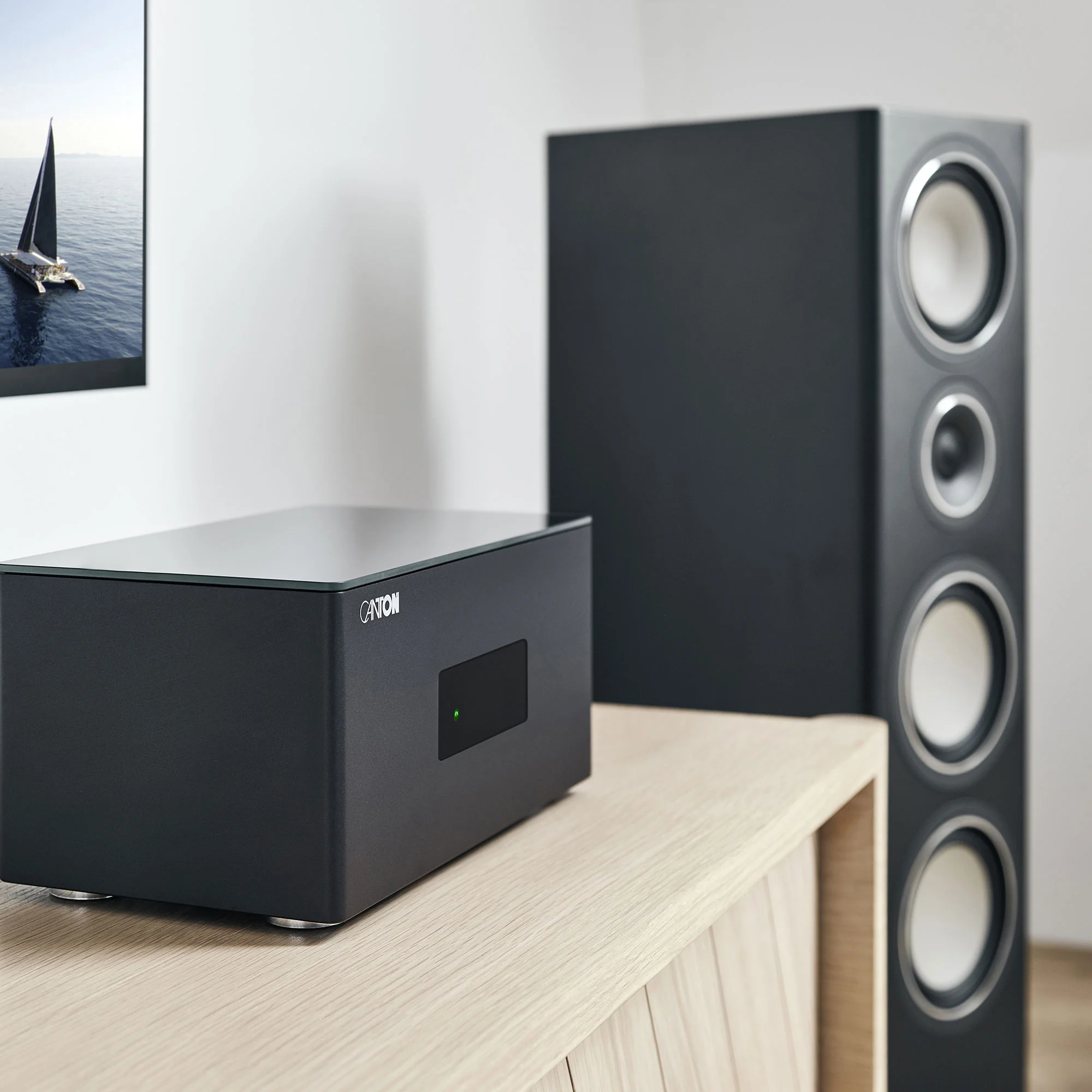 In addition to manual control using the app, you can also use your voice to start, pause, adjust volume, or control the entire Canton Smart system. While there are no microphones built into our Smart Amp 5.1, it still offers maximum compatibility for voice control. You can control the Smart Amp 5.1 with your voice using Google Assistant in the Google Home app or with voice commands in conjunction with a Google Home Mini. This means you can play your favorite music in any room with a button press or by voice.