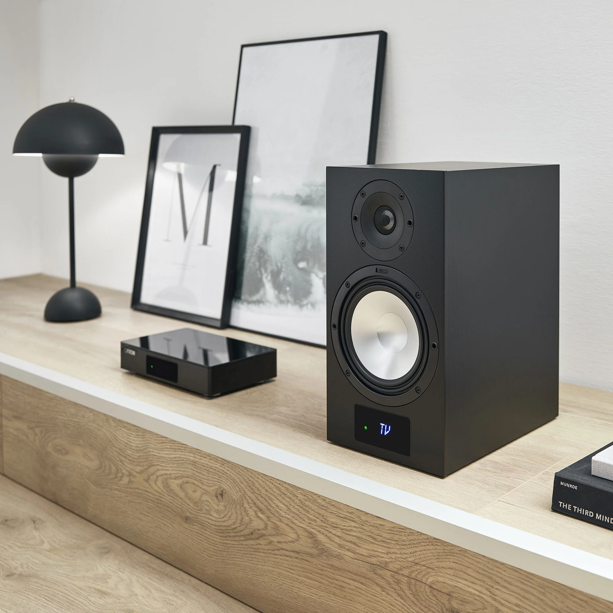 Smart Connect 5.1 integrates your existing stereo amplifier into WLAN. As a 3D audio DAC, it provides virtual volumetric sound in an existing stereo system. High-performance DSP and virtualizer deliver three-dimensional volumetric sound from all directions - even in stereo mode. Smart Connect 5.1 can also be connected to the television via HDMI and to other smart speakers to set up a home theater, turning your existing stereo amplifier into a home theater amplifier effortlessly.