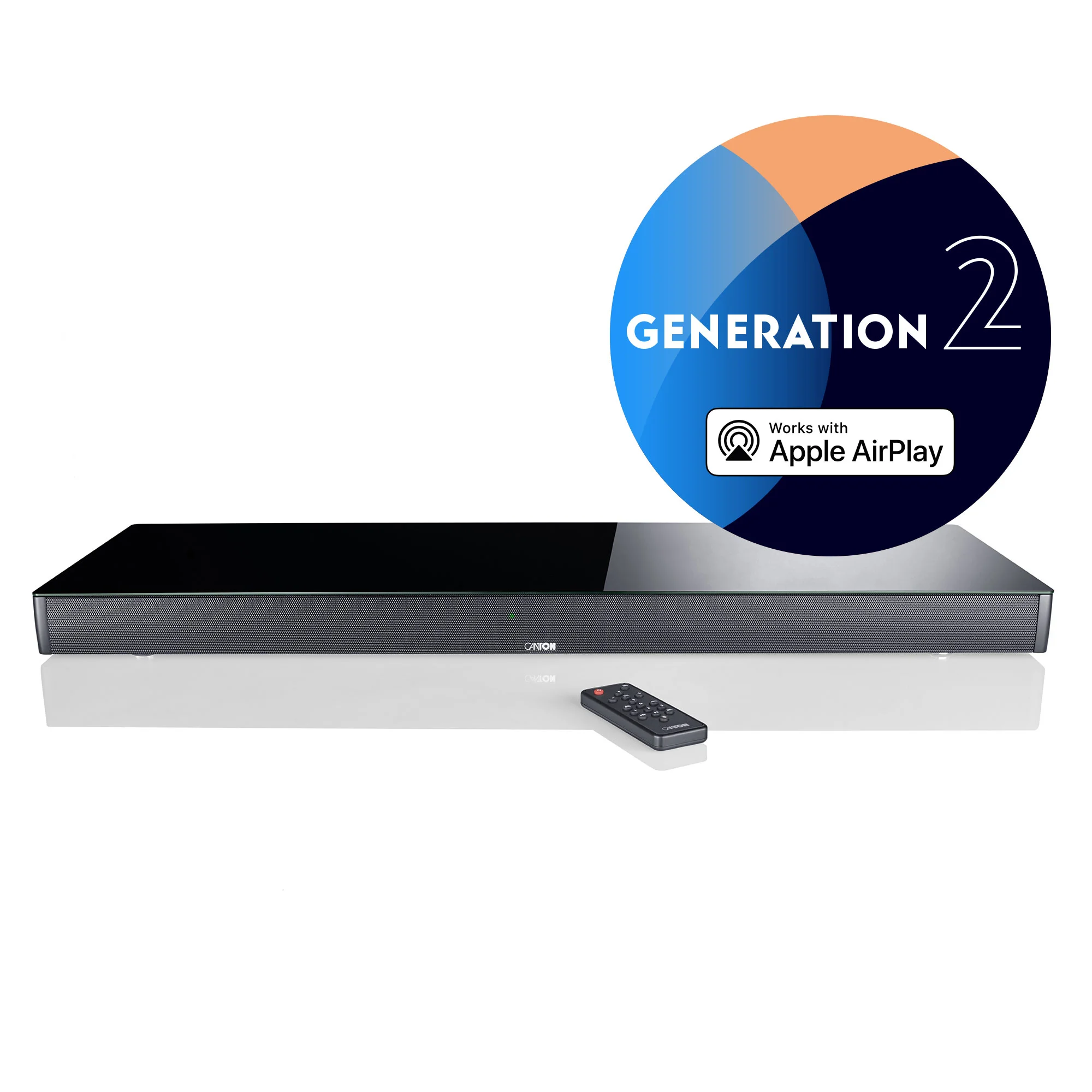 Canton Smart Sounddeck 100 is a virtual spatial sound system. The design is made using a phase-inverted acoustic layout, which makes the sound more spacious and deep. The total power of the sound system is 300 W. Bass reproduction is handled by a wideband 3.9-inch LF driver, and mid-range frequencies are reproduced using a 2-inch MF driver, made with Dolby Atmos technology. Both drivers are equipped with aluminum diaphragms.