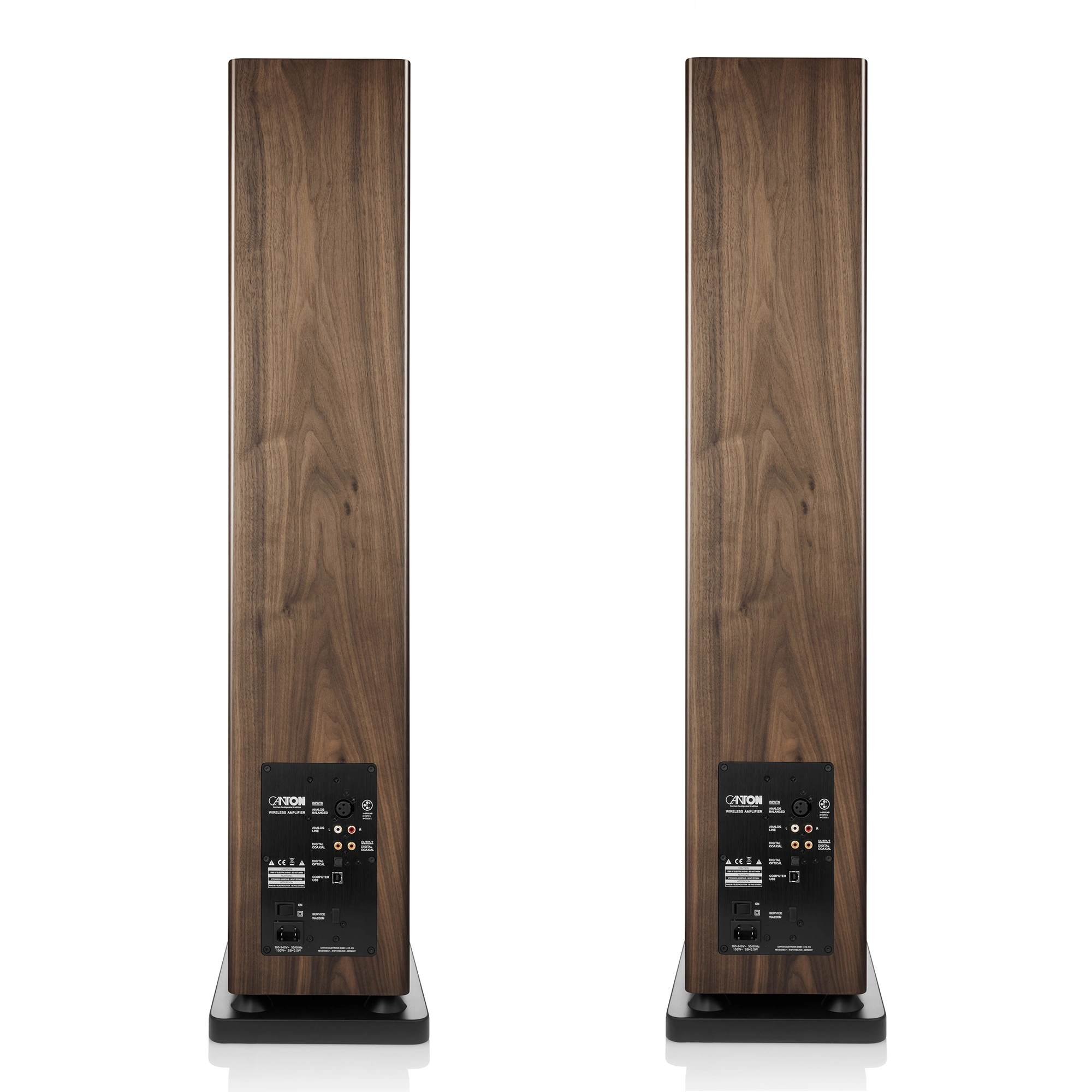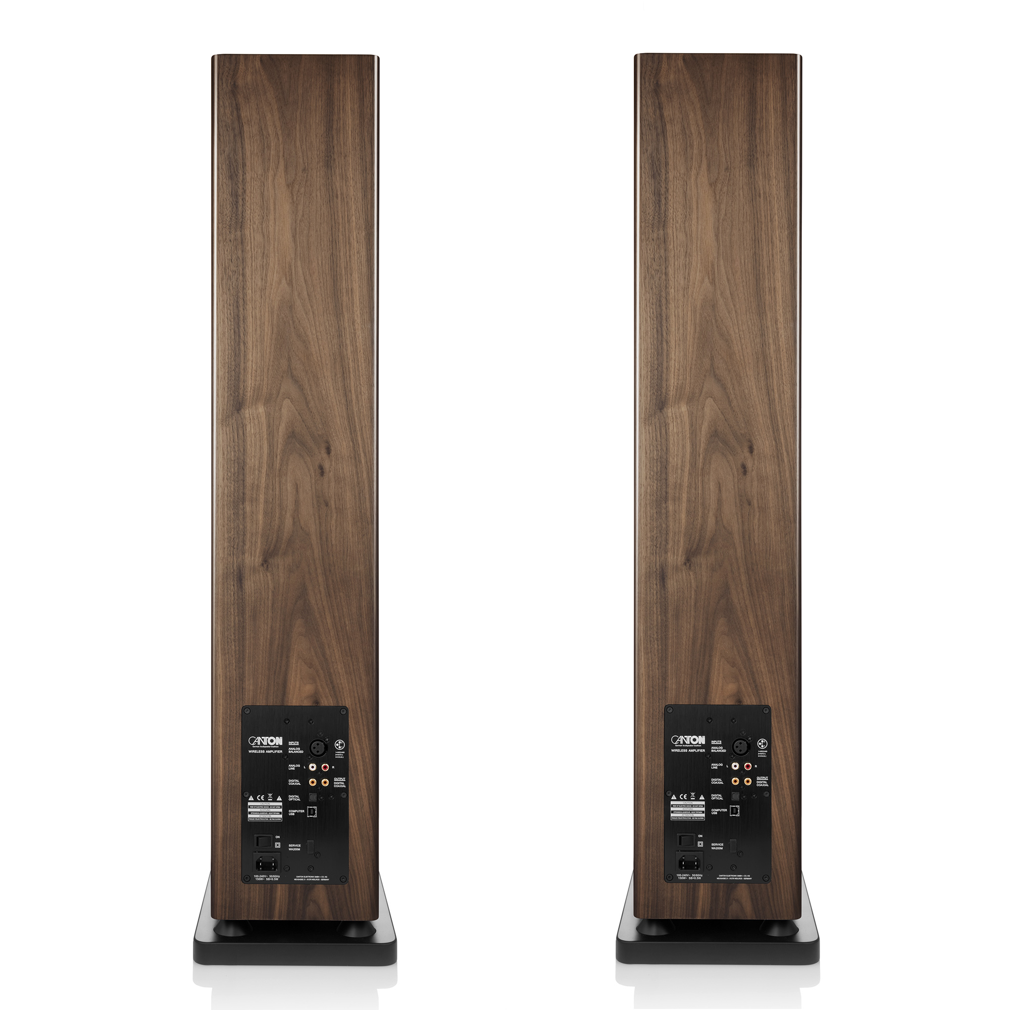 The fully active Canton Smart Townus 8 speakers come equipped with powerful amplifiers providing 350 W of power per floorstanding speaker, eliminating the need for external power amplifiers and speaker cables. Simply place them where needed, connect the power cable and player, and start enjoying music in your home. Wireless signal transmission with 24-bit signal processing between the speakers ensures high-quality music playback.