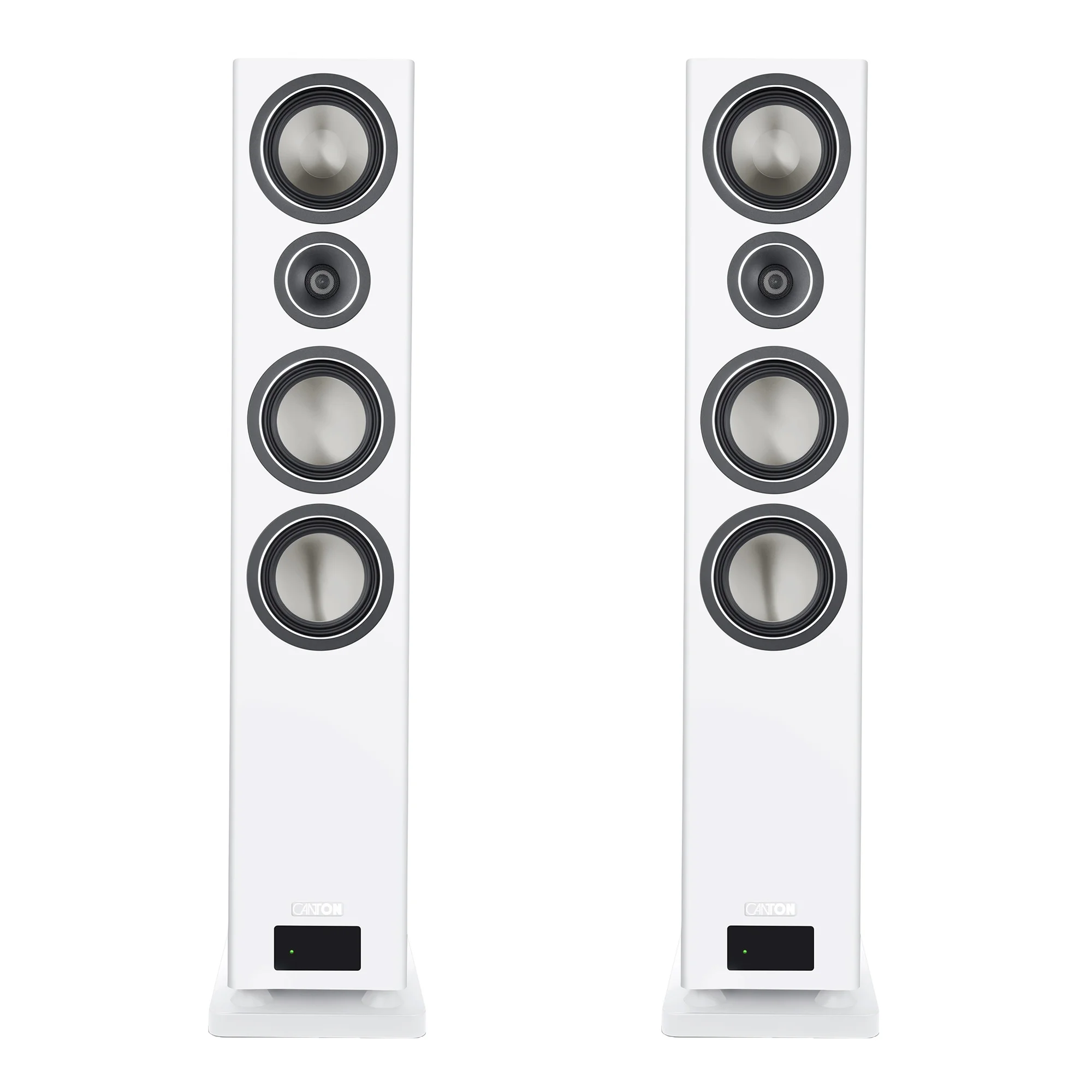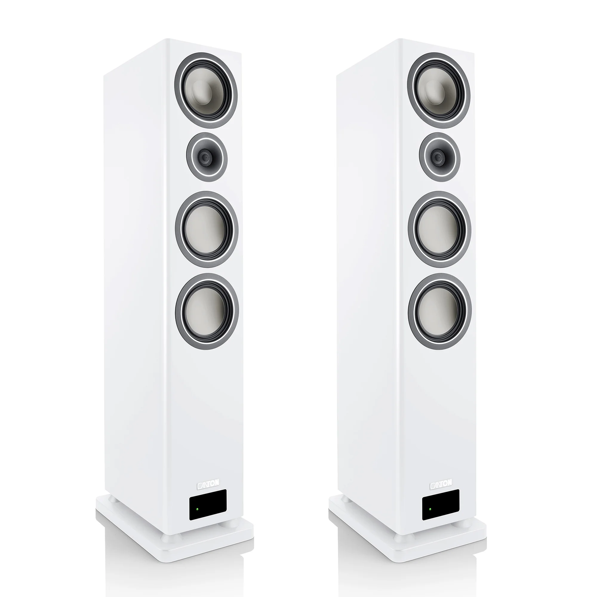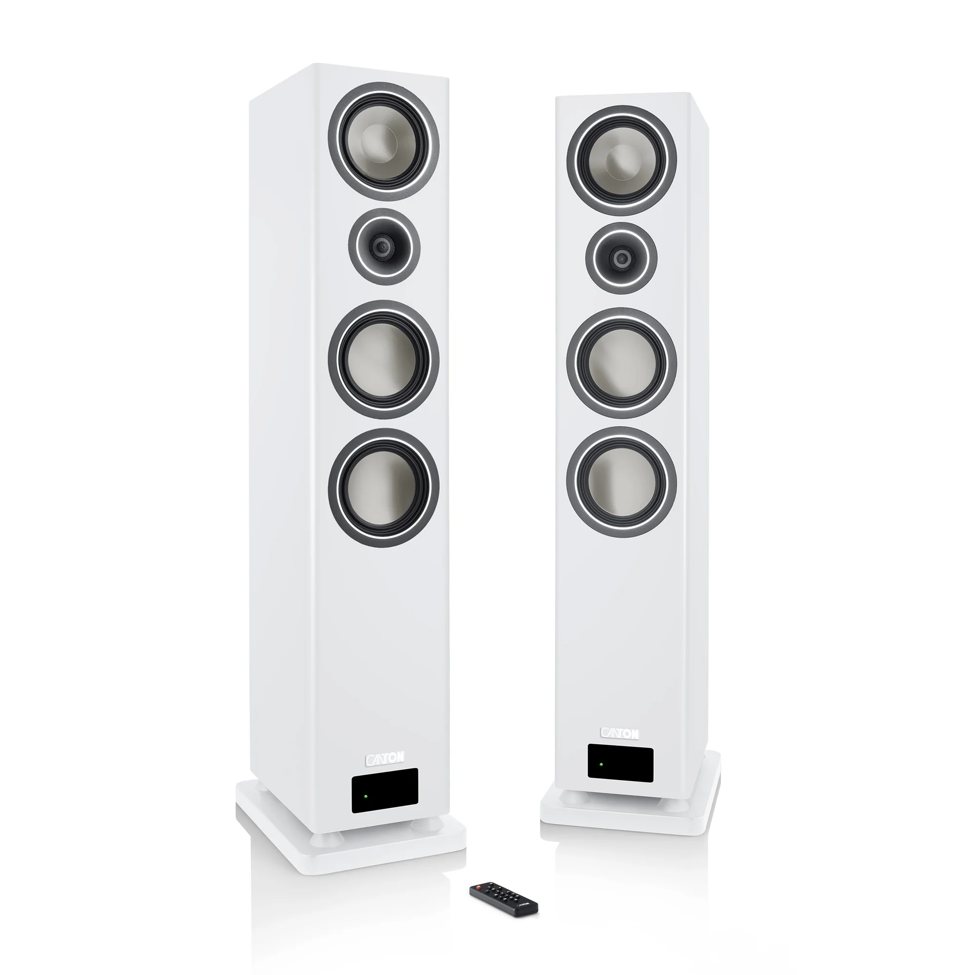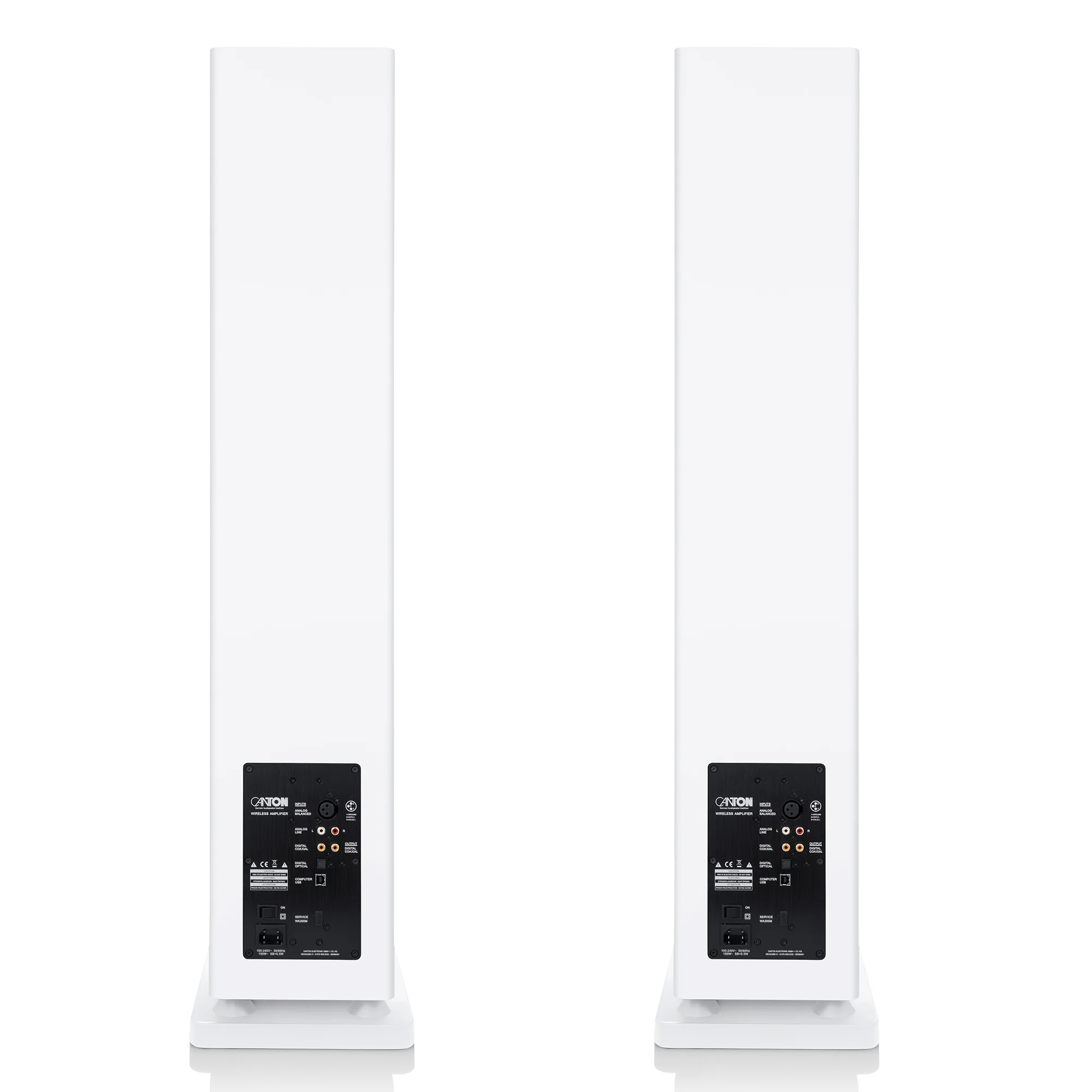 The fully active Canton Smart Townus 8 speakers come equipped with powerful amplifiers providing 350 W of power per floorstanding speaker, eliminating the need for external power amplifiers and speaker cables. Simply place them where needed, connect the power cable and player, and start enjoying music in your home. Wireless signal transmission with 24-bit signal processing between the speakers ensures high-quality music playback.