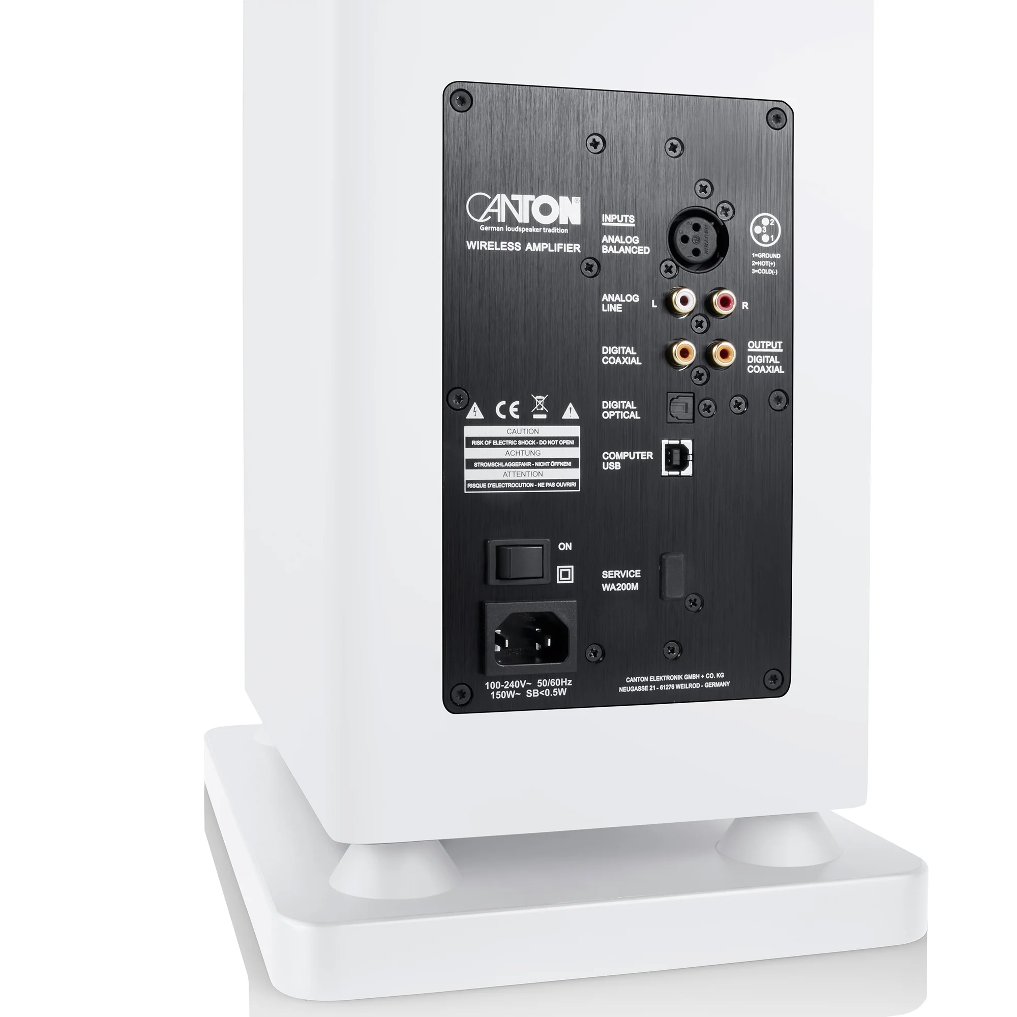 The Smart Townus 8 makes it easy for you to connect anything you desire to its numerous inputs. Analog connections are available in high-quality XLR and RCA versions, as well as digital versions in optical and coaxial designs. The USB input with XMOS allows connections to computers, and, of course, the Smart Townus 8 can transmit music wirelessly via Bluetooth with aptX codec for the best quality. With the smart features of Smart Townus 8, you can complement the floorstanding speakers with additional speakers from Canton - for example, the compact Smart Townus 2.