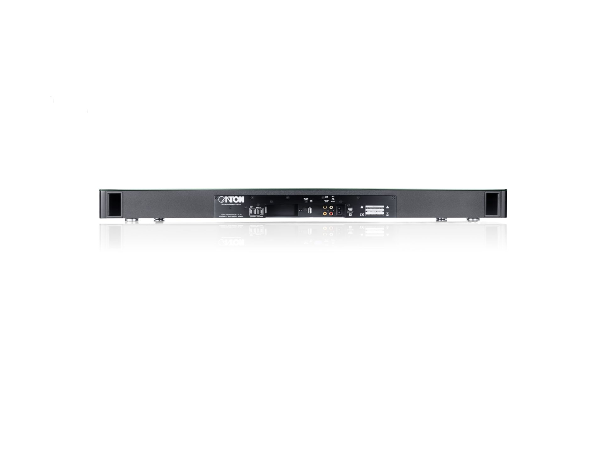 A three-digit multifunction display briefly lights up with each command input, allowing control of the front surround sound system. The display turns off during operation. By learning the TV remote's infrared code, Canton Sound L can be controlled with just one remote control. The 2.1 Virtual Surround system offers lip sync function, can reduce volume differences with dynamic range compression, or improve speech intelligibility with tone function.