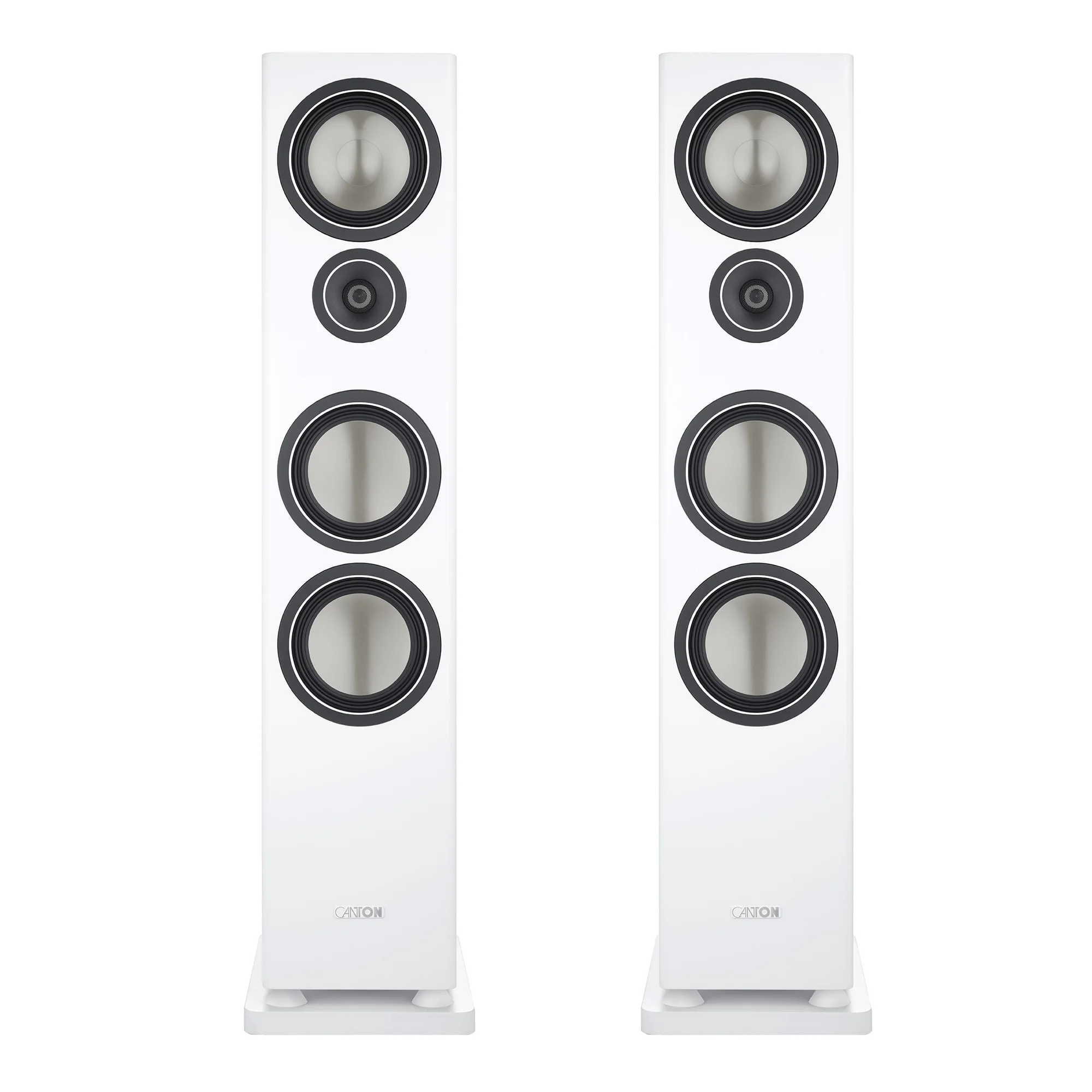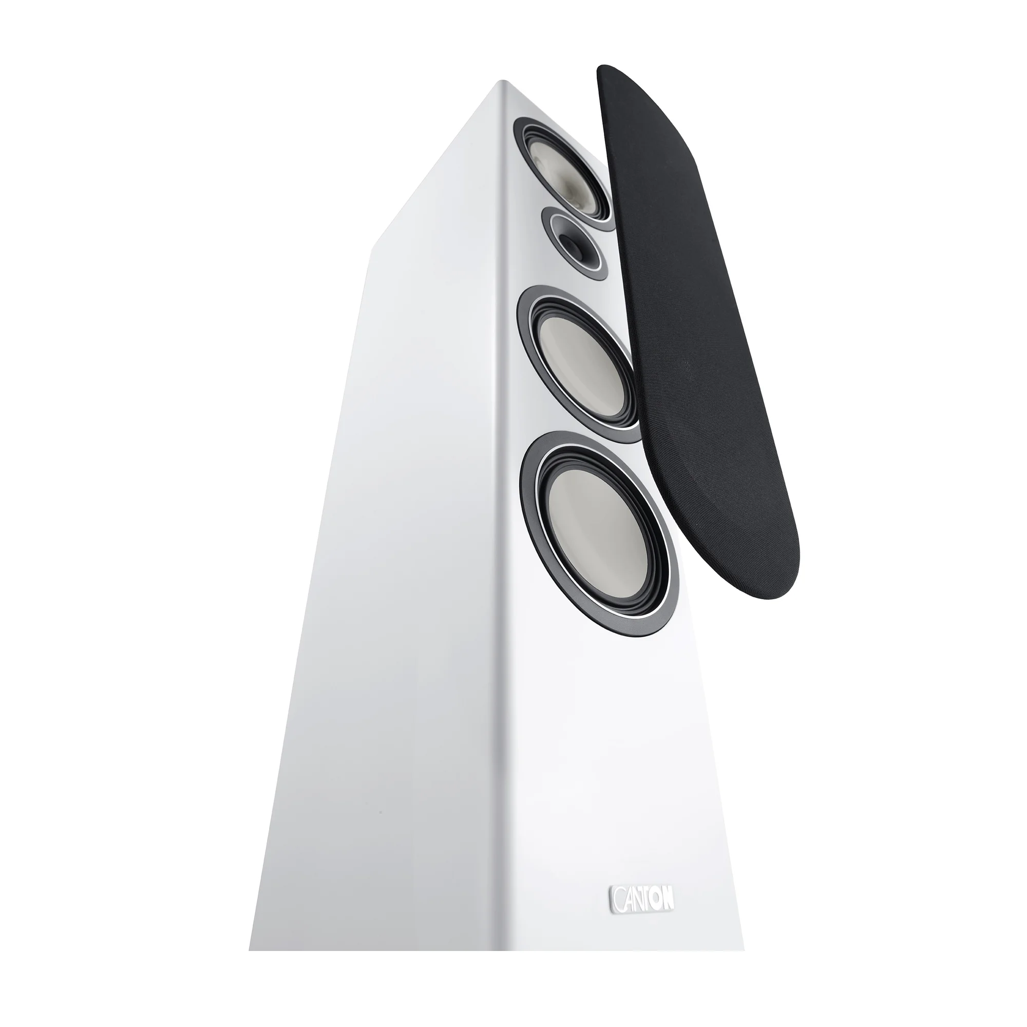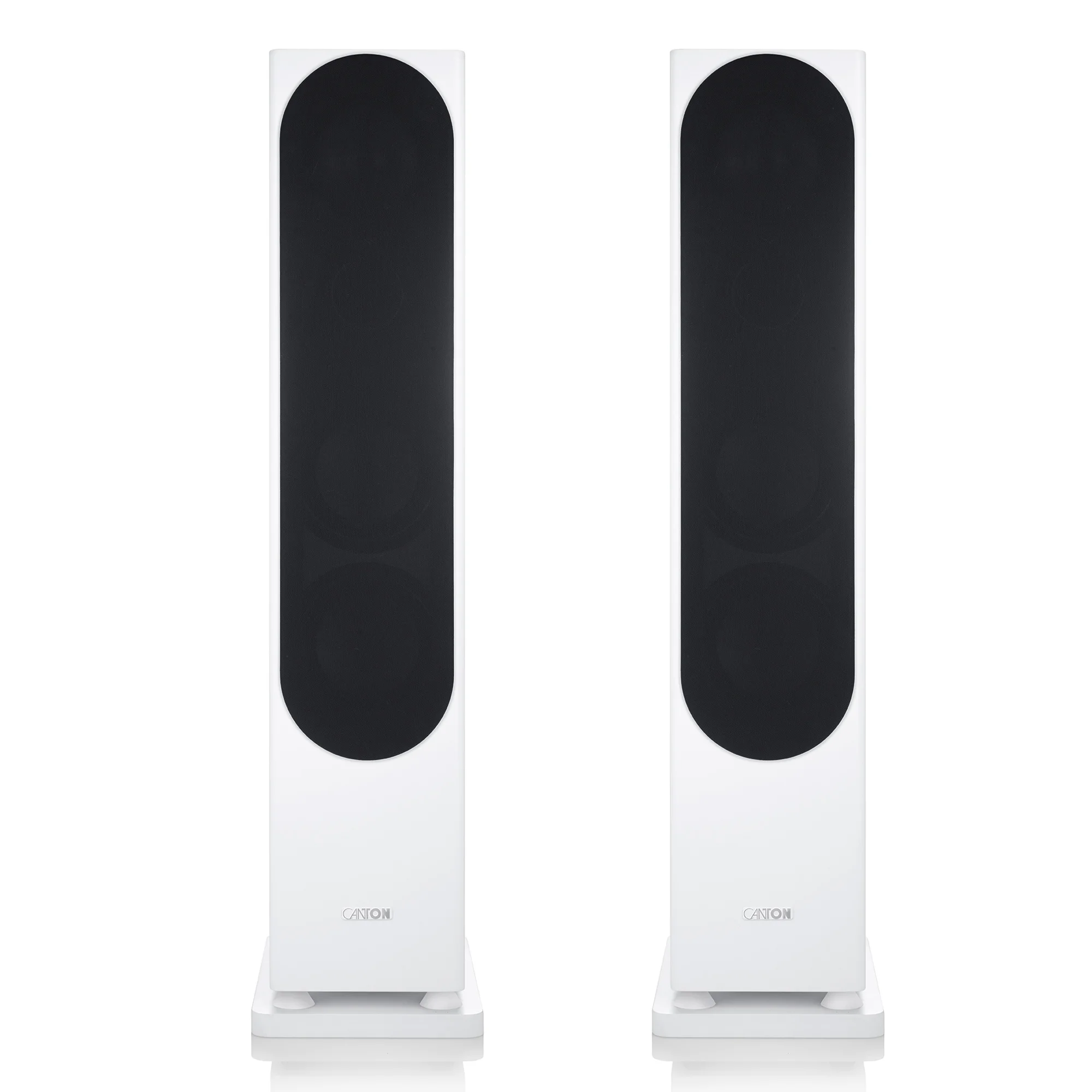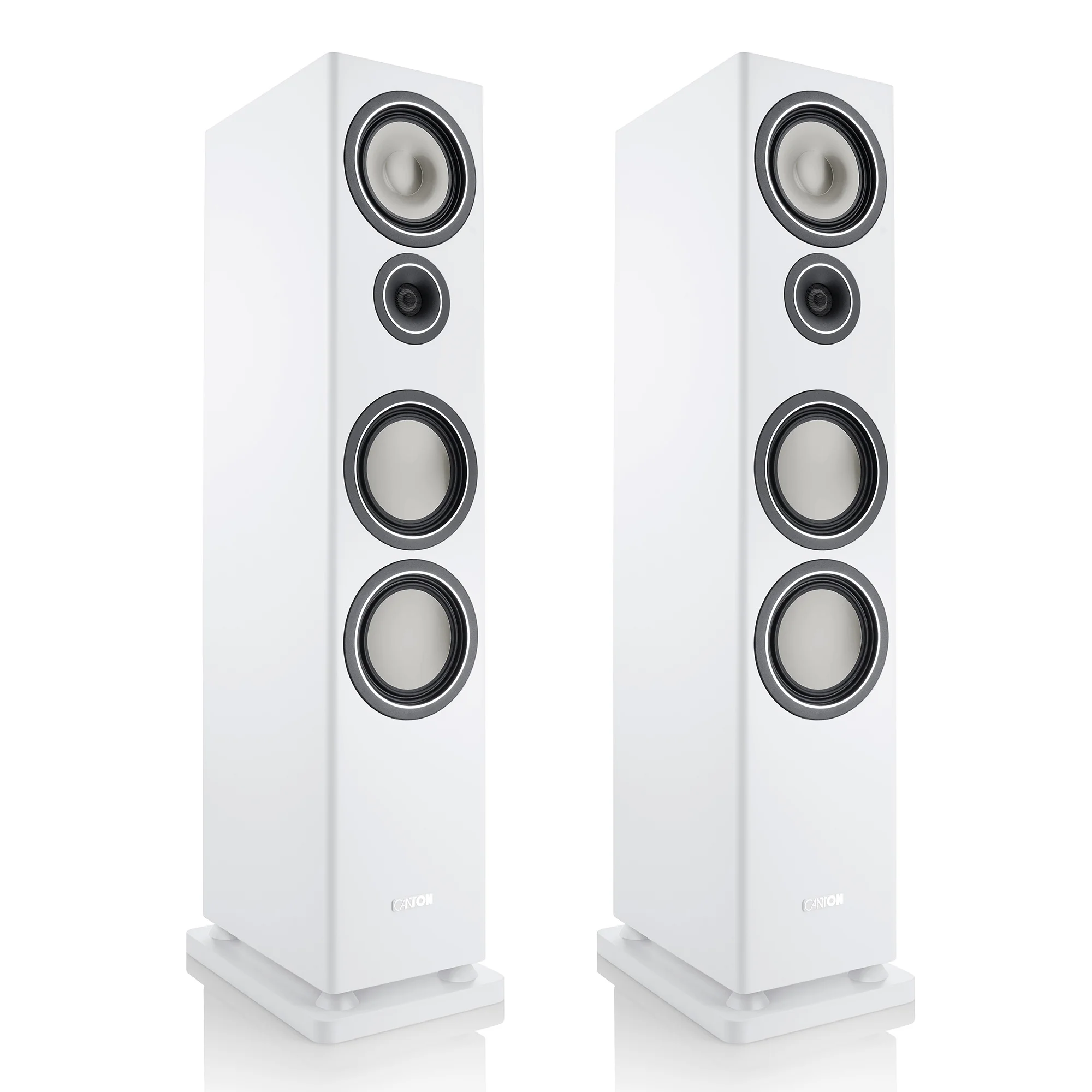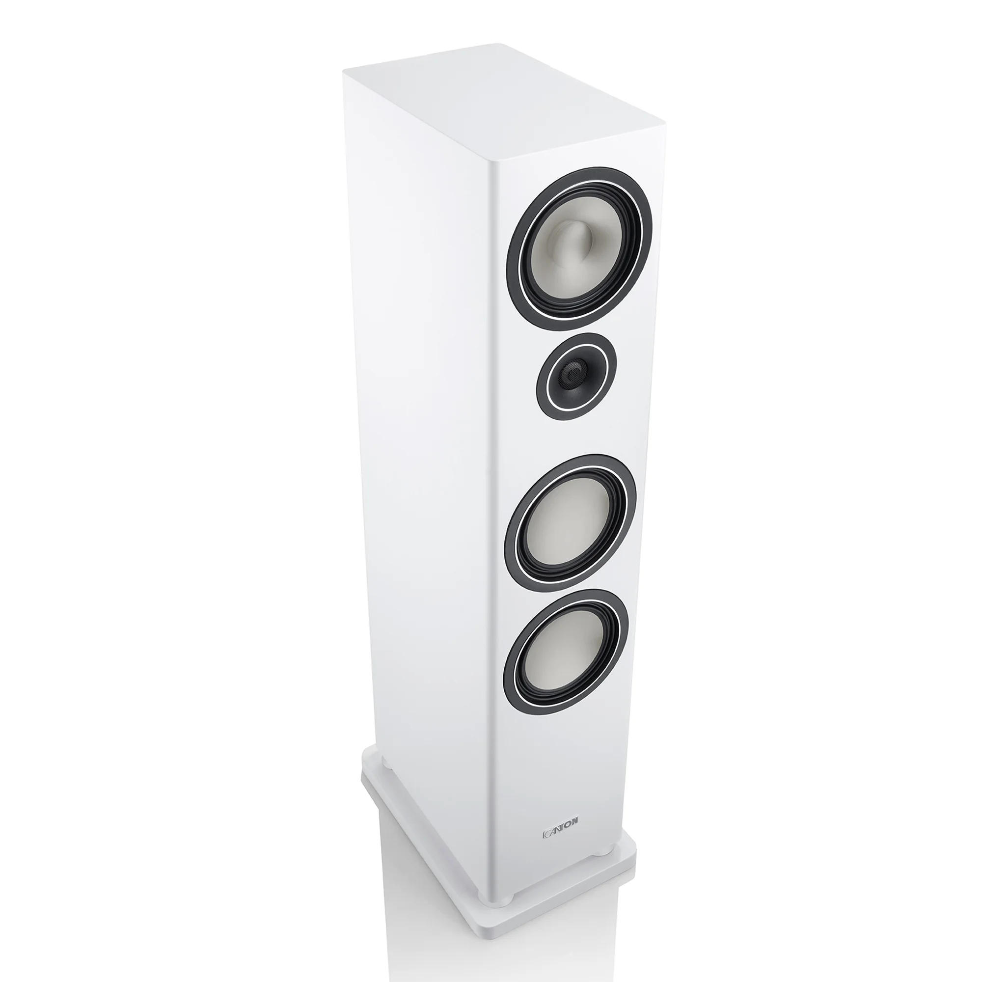 The robust cabinet of the three-way floor-standing Townus 90 speakers is reinforced several times from the inside and equipped with high-quality internal cable routing. Strategically placed insulation material inside the cabinet and selected high-quality crossover components optimize the sound of these approximately 24 kg speakers. The four drivers, delivering the renowned Canton sound in the slim Townus 90 speakers, are state-of-the-art. Three 174 mm drivers with titanium diffusers provide dynamic bass and detailed powerful midrange frequencies.