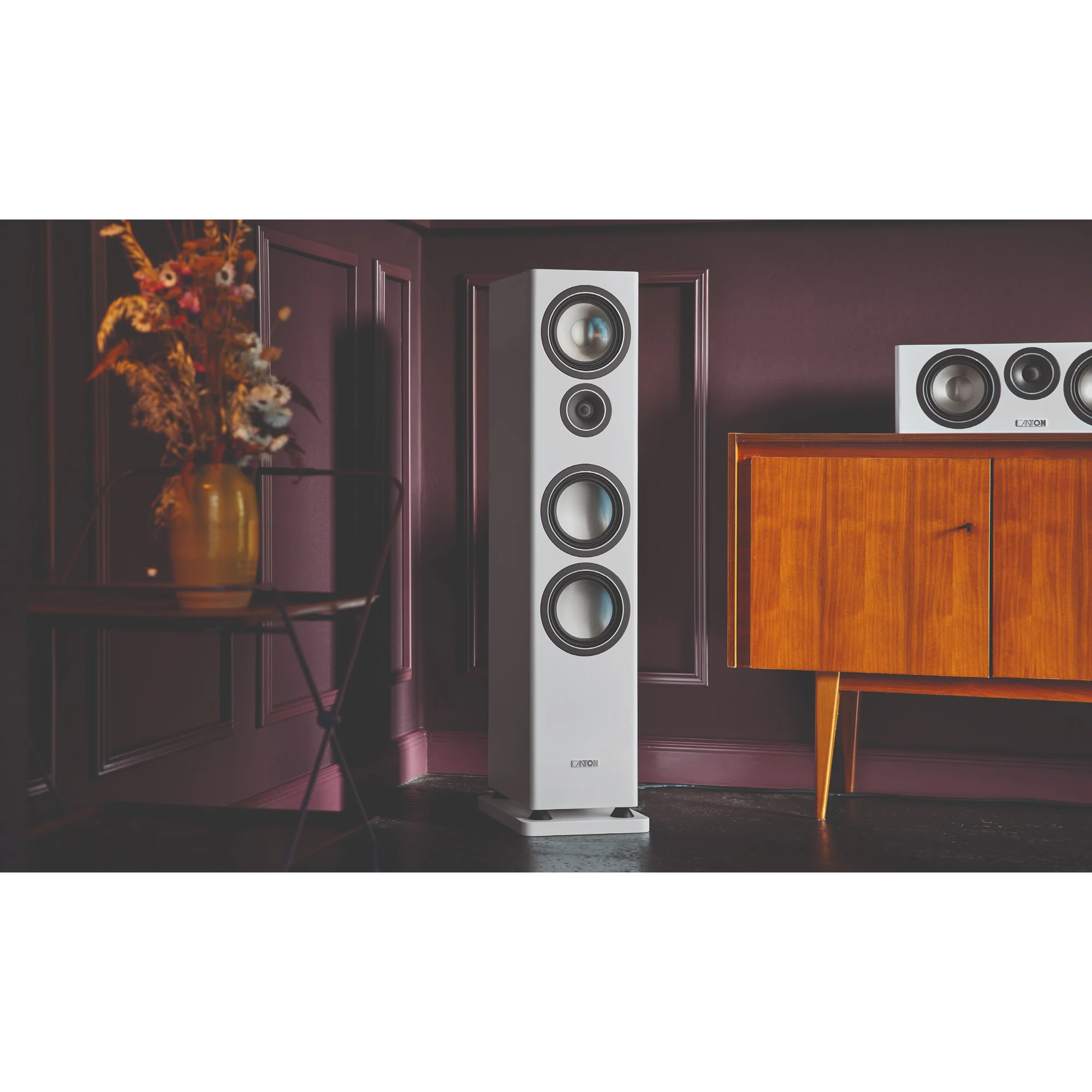 Thanks to the bass drivers with stiff dual-cone membranes and low distortion with Wave Volume Acoustic technology, the Townus 90 reproduces accurately and calmly even at high sound levels. Combined with the patented direct current technology, the 174 mm bass duo in the cabinet with a phase inverter reproduces powerful and accurate bass without uncontrolled membrane deviations in the case of low tones. The practical 25 mm ceramic dome tweeter made of aluminum oxide shines with detailed and precise sound. The precisely calculated waveguide for perfect sound radiation and imaging optimizes the speaker's reproduction up to 40,000 Hz.
