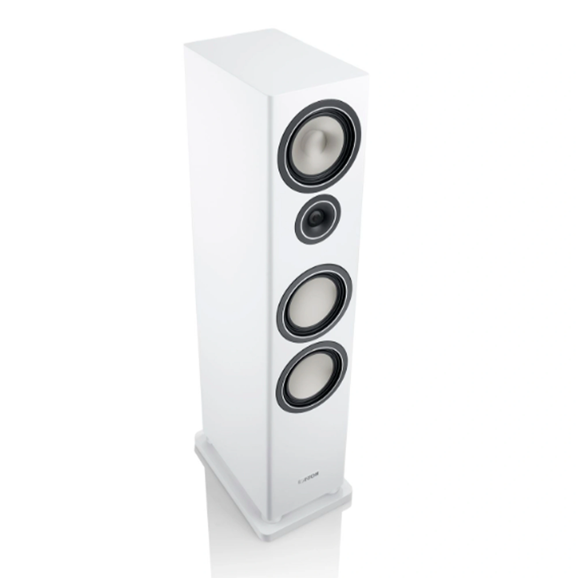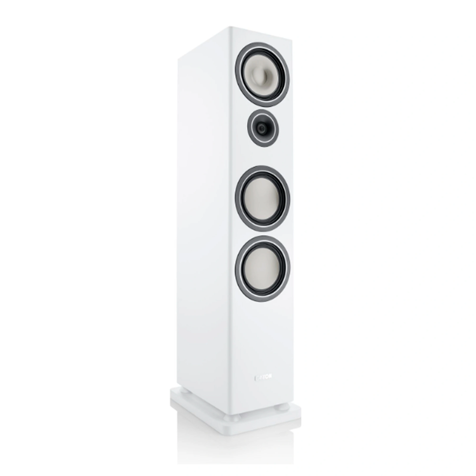 The solidly built cabinets of the Townus 90 three-way floor-standing loudspeakers are reinforced several times on the inside and equipped with high-quality internal cabling. Strategically placed damping material inside the cabinets and selected crossover components of the best quality optimise the sound of the speakers, which weigh about 24 kilograms. The four drivers in the slim Townus 90 loudspeakers are state of the art and provide the renowned good Canton sound. Three 174 mm drivers, with titanium diaphragms, enable dynamic bass and detailed, powerful mids.