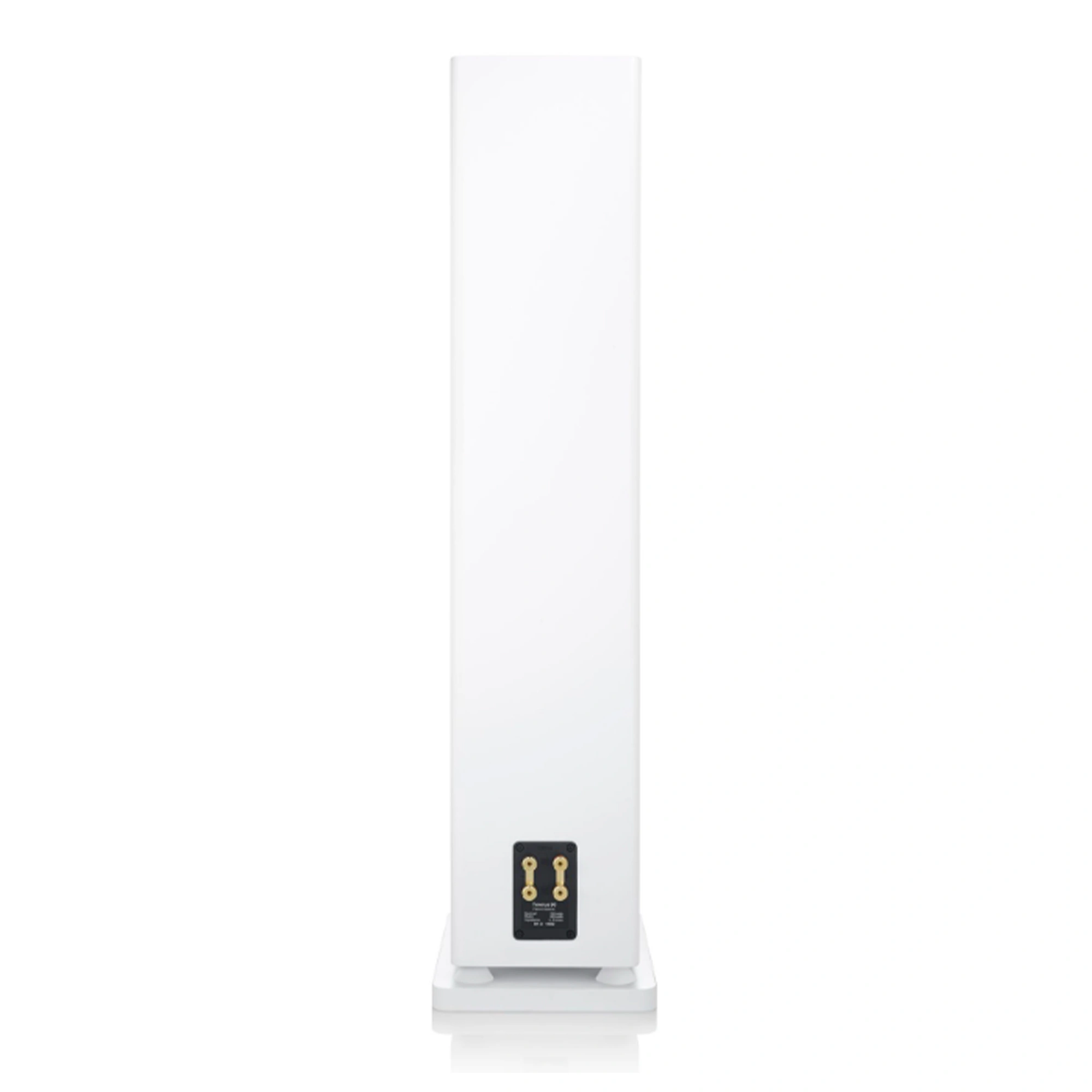 Further visual highlights are the high-quality aluminium rings of the loudspeaker chassis, which are manufactured using the Seamless Diamond Cut process, and the fabric panels, rounded at the corners, which adhere magnetically to the baffles. Last but not least, the beautifully shaped wooden base with four metal feet serves as a solid foundation for the slim floorstanding speakers. Hidden from the listener's view, the large bass reflex port in the cabinet base extends the frequency response downwards. The downfire arrangement of the bass reflex port acoustically stimulates the room evenly - precise, deep bass without any tendency to boom is the desired result.