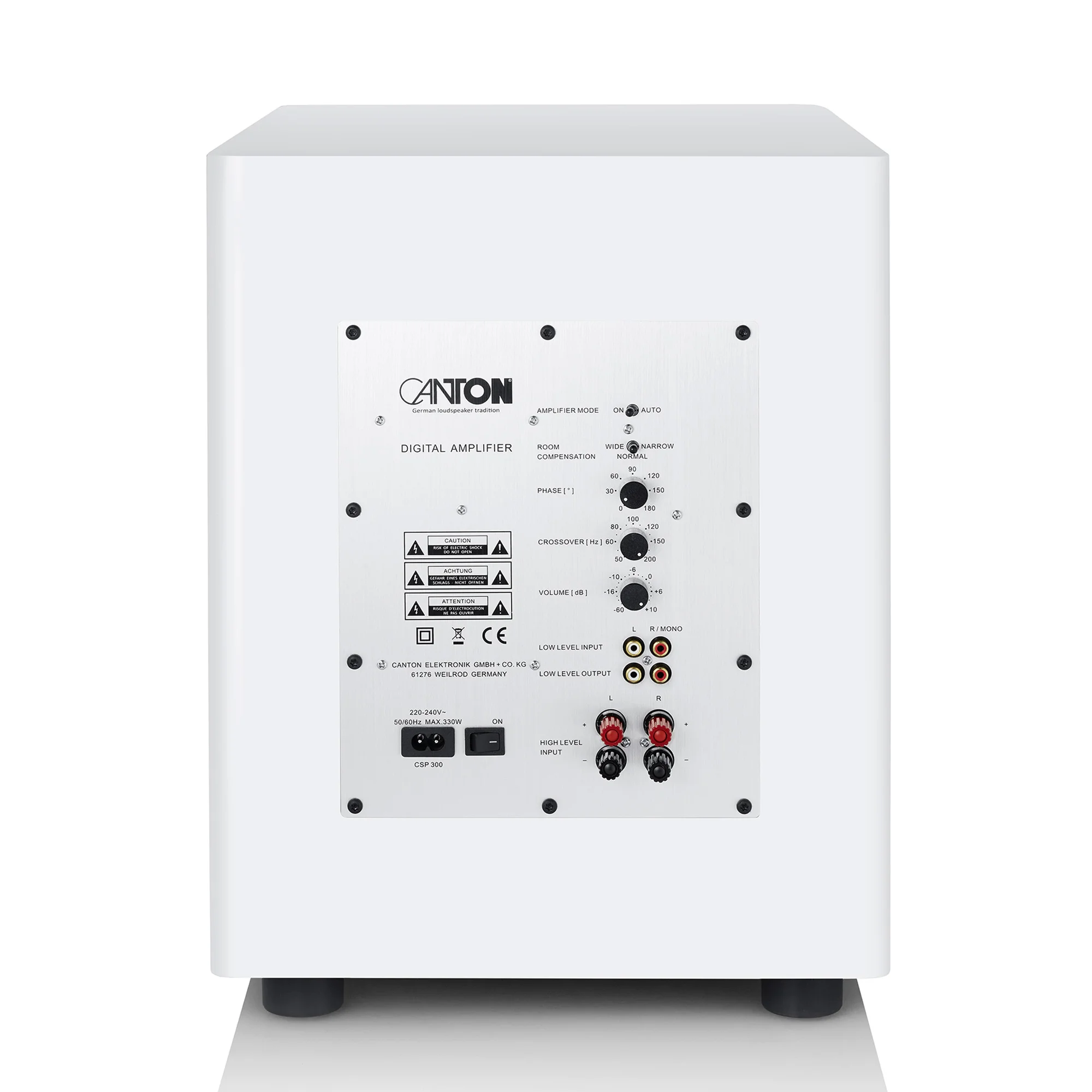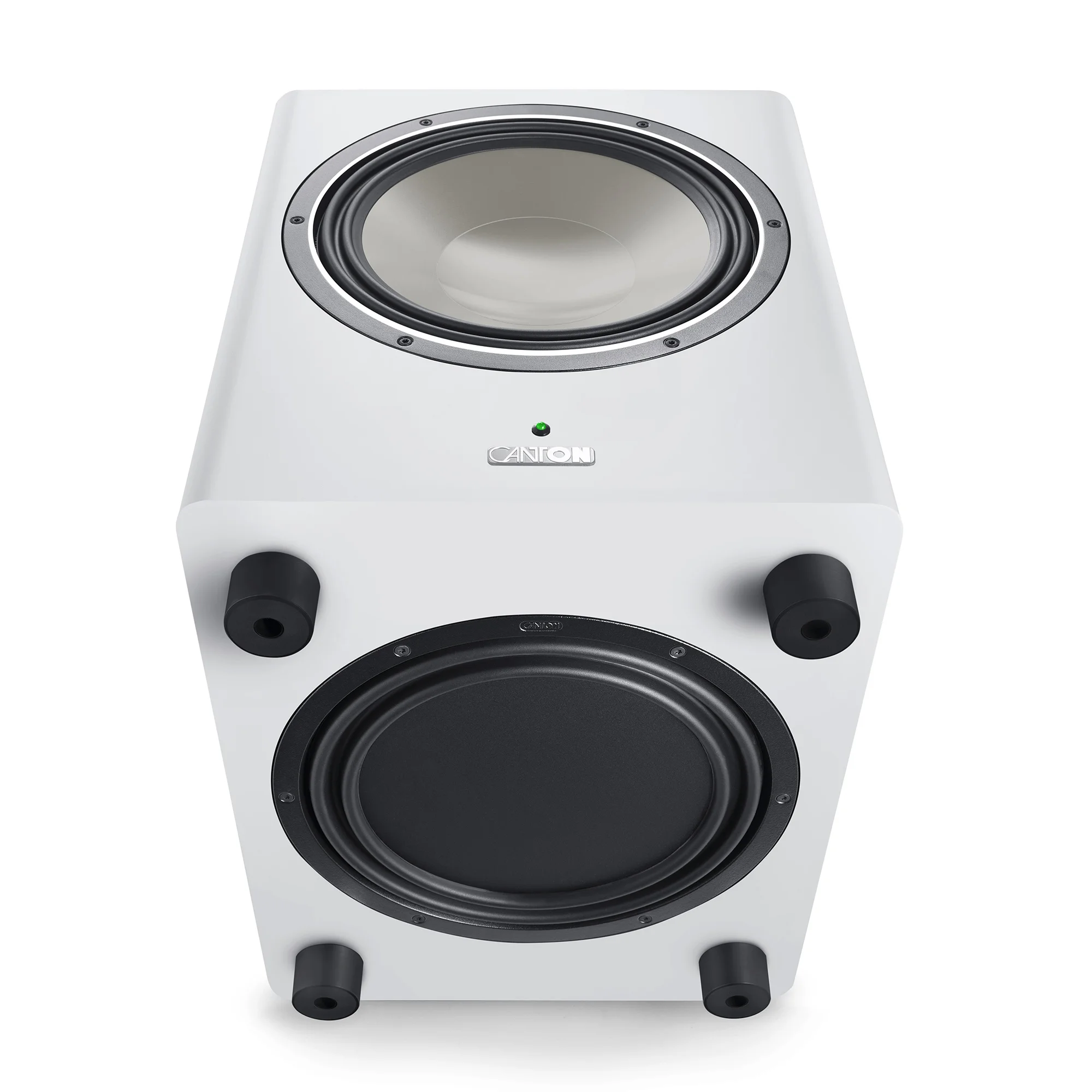 The Canton Townus Sub 12 active subwoofer operates on a phase inverter principle with a downward-firing passive membrane. To guarantee precise mechanical characteristics, it is equipped with a large-size drive incorporating the latest generation of voluminous sound technology. The multi-layered voluminous sound wave allows for a much greater excursion than conventional voluminous speakers, reducing sound distortion. For maximum accuracy and proper impulse bass signal processing, a high-performance titanium chassis and rigid passive MDF membrane are used.