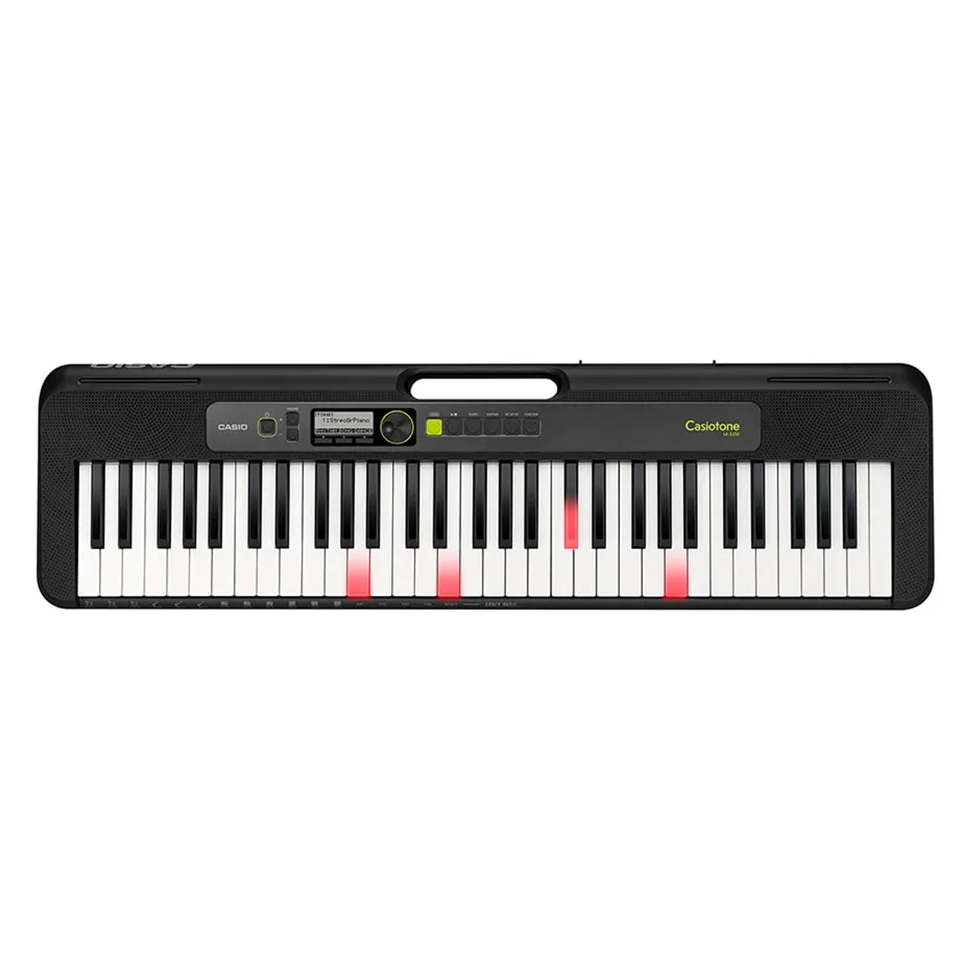 The Casio LK-S250 is a compact synthesizer with a 61-key piano-style keyboard and two sensitivity levels. It can be powered by either an outlet or 6 AA batteries, and weighs only 3.4 kg.