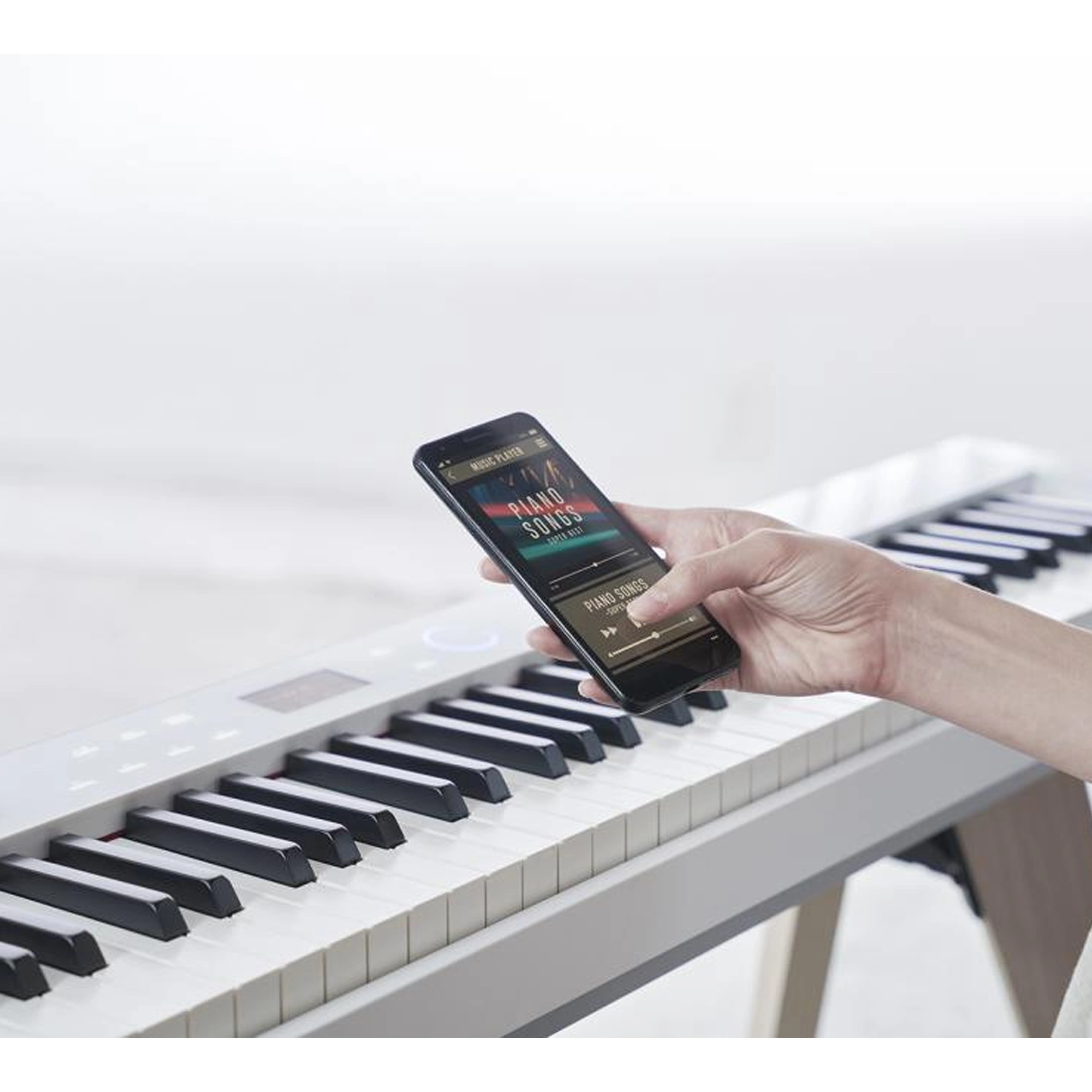 The Live Concert Simulator gives the player a virtual experience of the spatial acoustics of various venues. This can range from a small living room with a piano to a large concert hall, with special places such as a beach, riverbank, or rain to choose from. Last but not least, the piano's remote control provides access to detailed setup parameters, including keyboard behavior, metronome function, or general system settings.