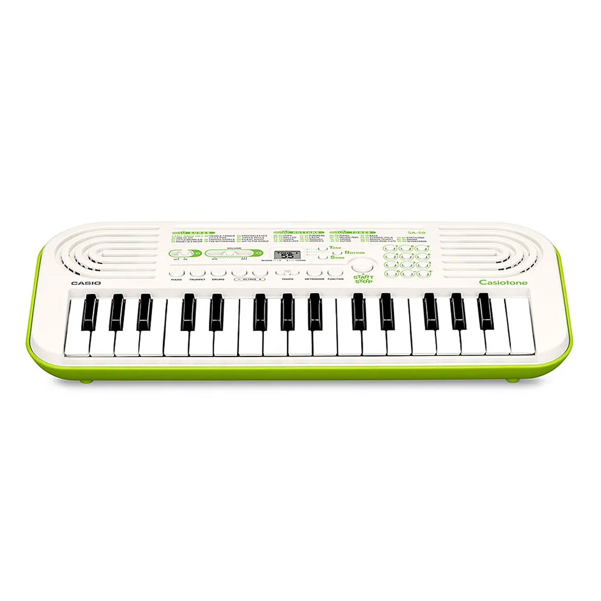Additionally, the SA-50 includes educational functions such as a metronome and song library, making it an ideal choice for beginning music education. The SA-50 can operate for hours using 6 AA batteries or an AC adapter (both sold separately), and its durable, portable design is perfect for music practice anytime, anywhere.