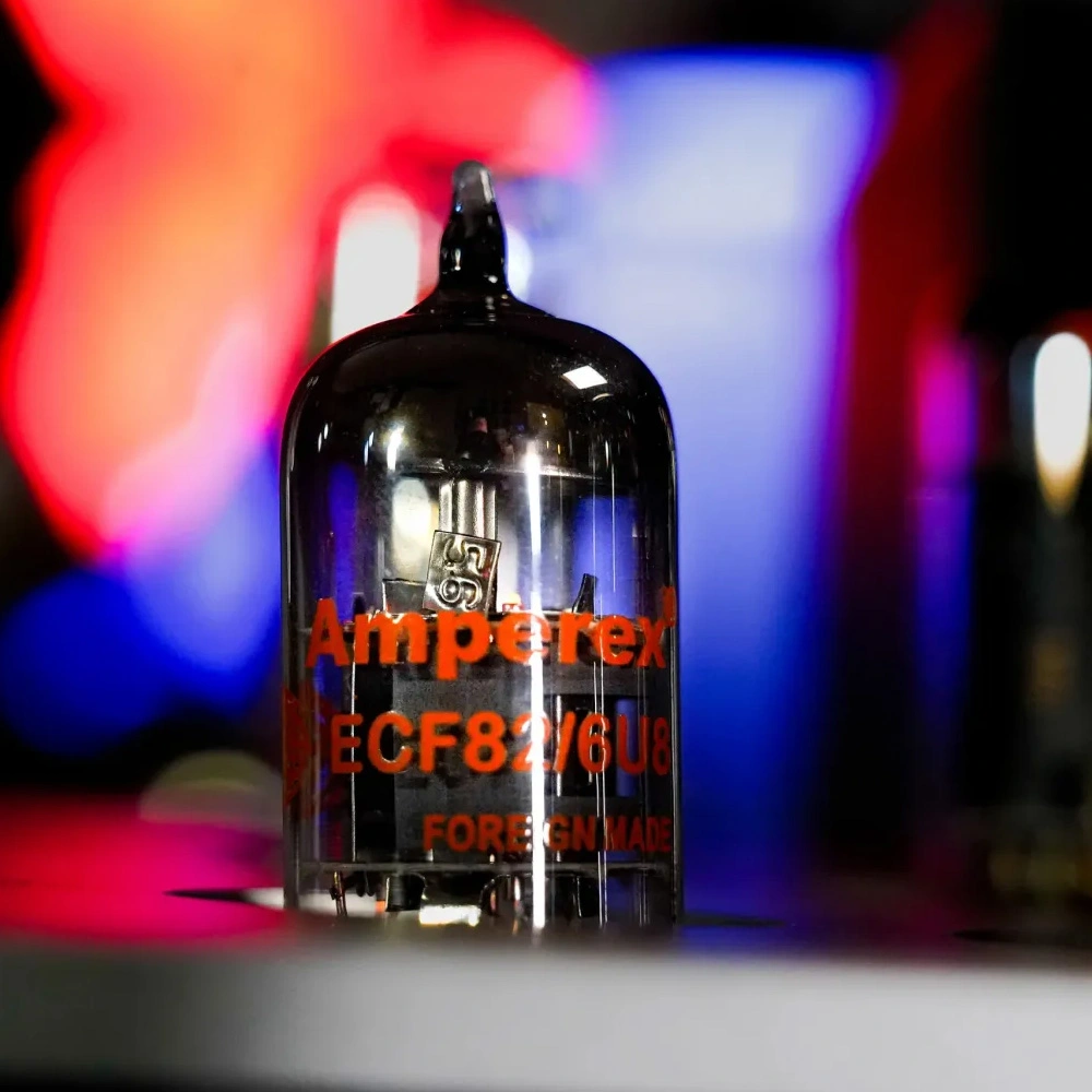 - Matched pair of Amperex ECF82/6U8 NOS high-gain pentode / medium-gain triode composite tubes for voltage amplification;