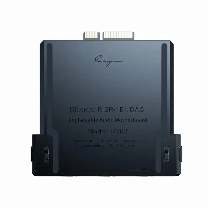 The Cayin R202 motherboard is a high-performance audio module built around a fully discrete, fully balanced dual-DAC architecture. It features both a 24-bit R-2R ladder DAC and a discrete 1-bit DAC, each using ultra-precise 0.1% thin-film resistors for native PCM and DSD decoding. A dual digital audio processor supports up to PCM 768kHz and DSD512, with smart triple decoding modes—automatically selecting the best DAC architecture for the input format.