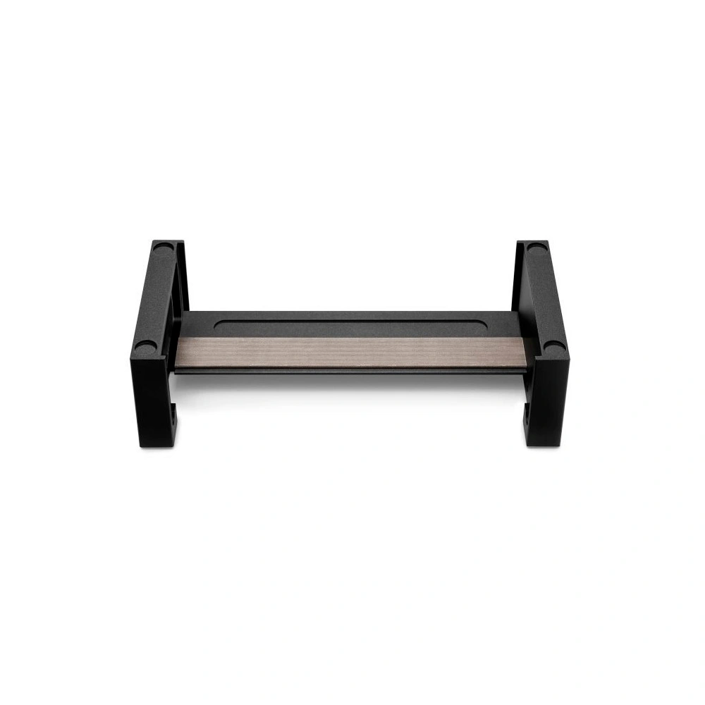 The Chord Electronics Qutest Stand System (QSS) is a fully modular system that allows for horizontal or vertical installation of modules. Each module accommodates one component from the Qutest series with a front panel width of 16 cm. The stand features a secure attachment for the equipment, easy access to the front and back panels, and efficient heat dissipation thanks to its solid construction made from milled aluminum.