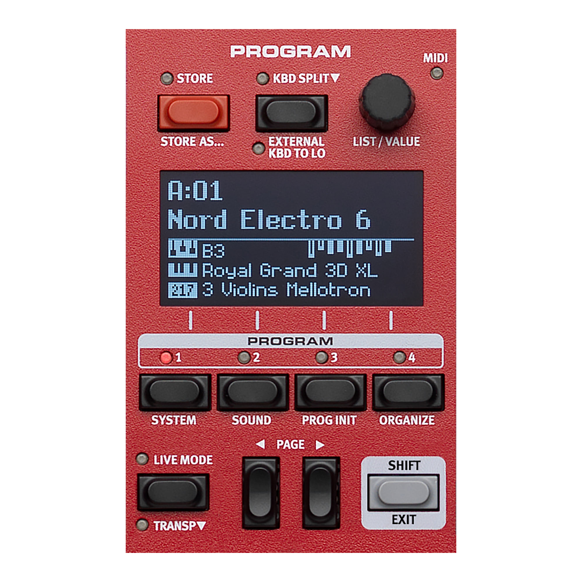 The Piano section has a wide selection of acoustic, electric and digital pianos from the exclusive Nord Piano Library, extended voice polyphony and creative new Piano Filters.