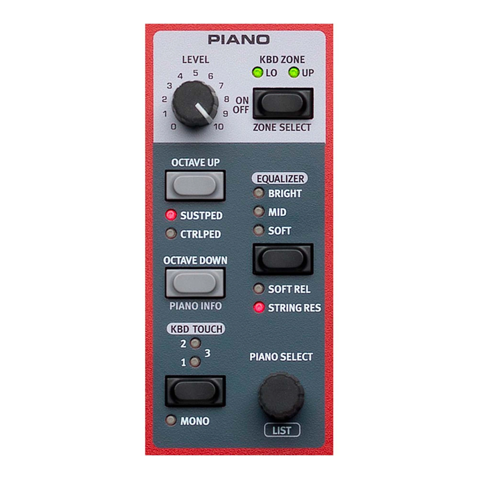 The Nord Electro 6 features automatically seamless transitions when changing sounds or programs while playing. The panel has three independent sound sections; Organ, Piano and Sample Synth that can be used simultaneously as a layer or a split. It features 6 Split Points and the new Split Point Crossfade functionality introduced with the Stage 3 for smooth transitions between two split zones. Choose from 3 different crossfade widths (Small, Large or Off) as indicated by different LED colors.