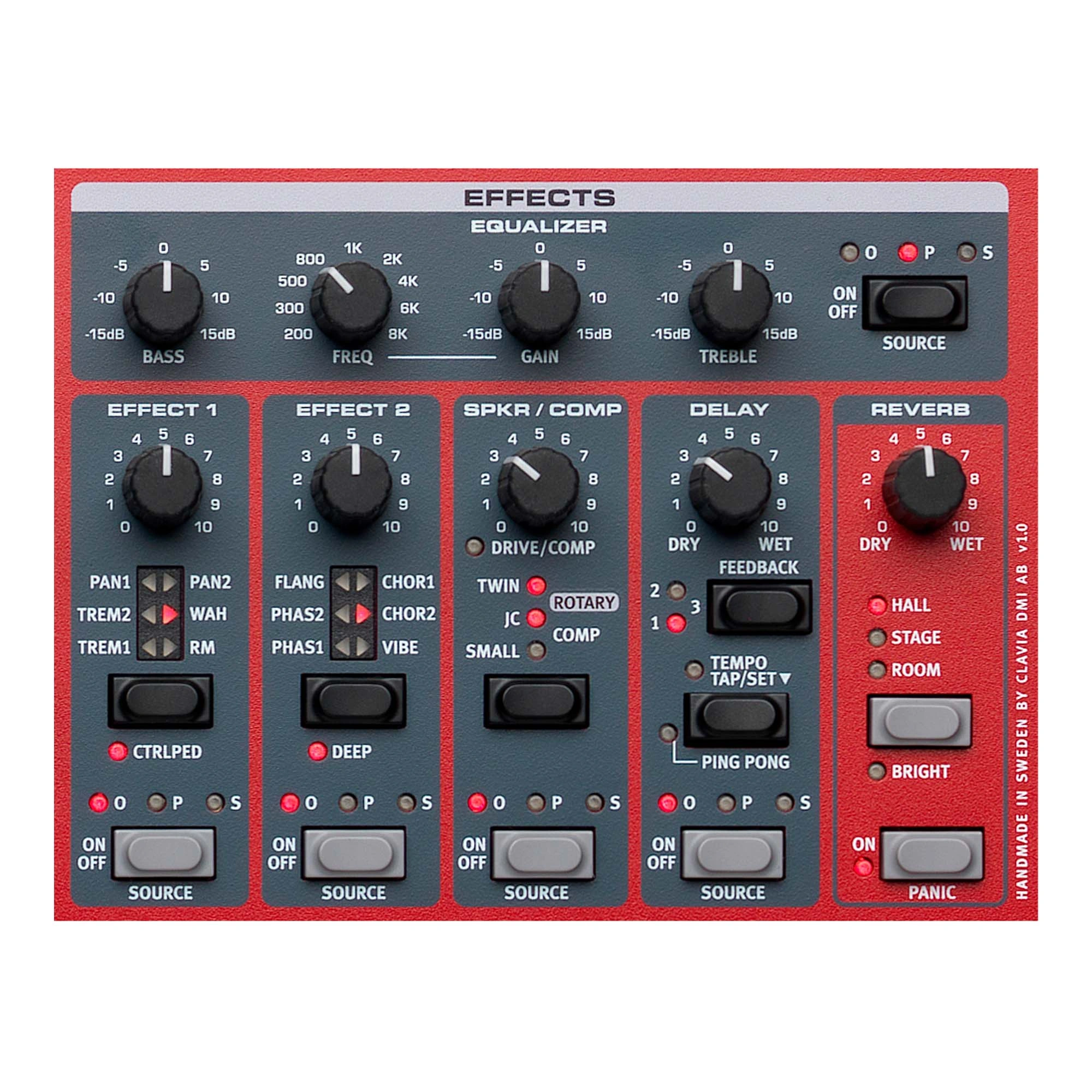 The powerful Effect section features a wide range of instantly tweakable high quality effects modelled after classic stomp boxes. All effects are stereo and can be assigned freely to the Organ, Piano or Synth sections.
