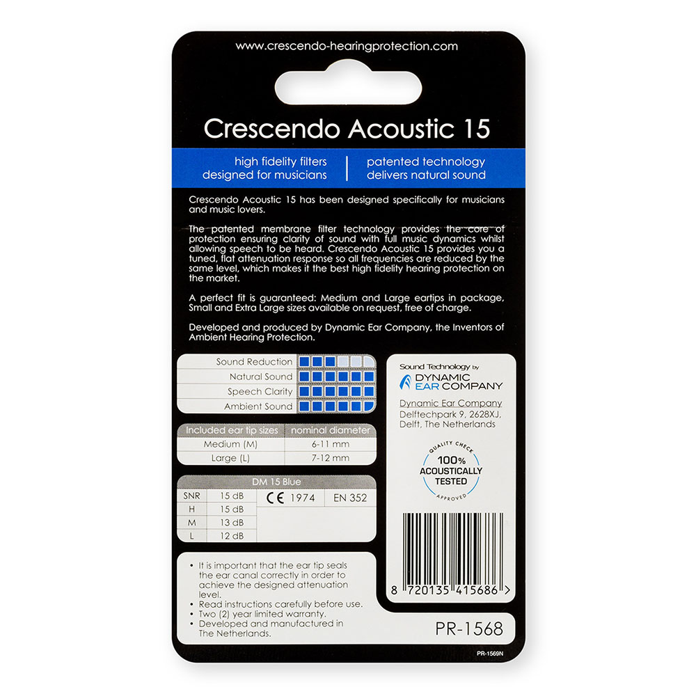 Crescendo PRO – Acoustic 15 Ear Plugs package contains: