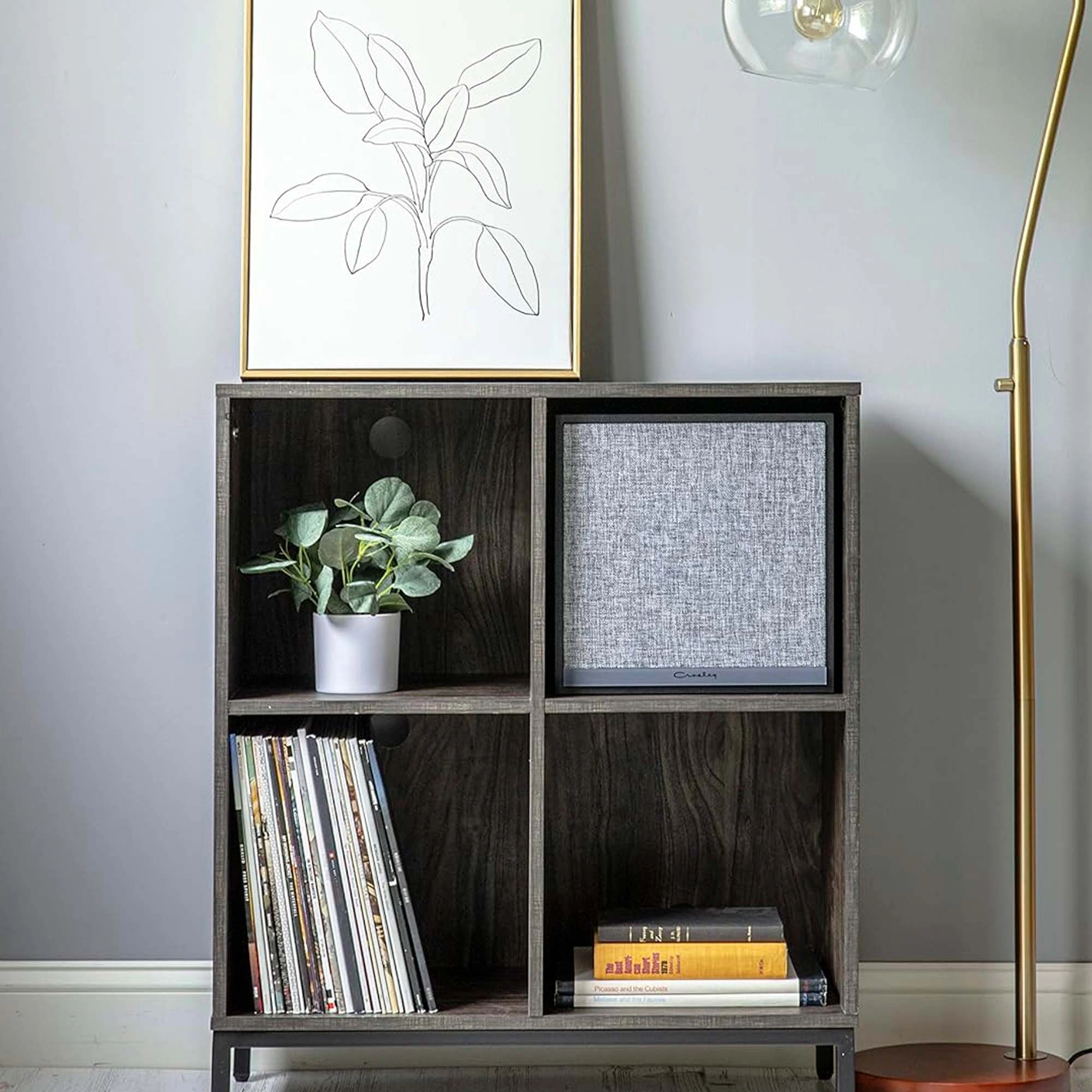 Looking for a speaker that looks and sounds great at the same time? The 40W Cadence Bluetooth speaker ensures that your music always takes center stage. The clever design of the Cadence allows for easy integration with the Crosley Furniture Liam Record Storage Cube bookshelf or any other cube storage of your choice. The speaker's magnetic grille and audio cable effortlessly complement any style. The built-in Bluetooth receiver in the Cadence enables seamless pairing with your phone to stream digital music directly through the speaker.