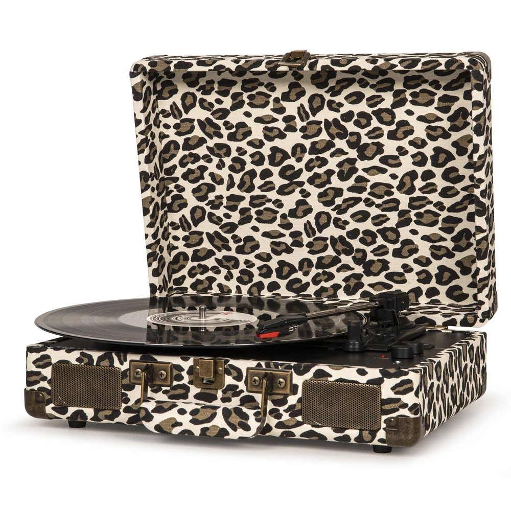 For fans of exotic accessories and unusual interior solutions, Crosley presents the model of the most popular suitcase, the Cruiser Deluxe, in the Leopard color scheme. The Crosley phonograph will allow you to enjoy high-quality sound without limits.