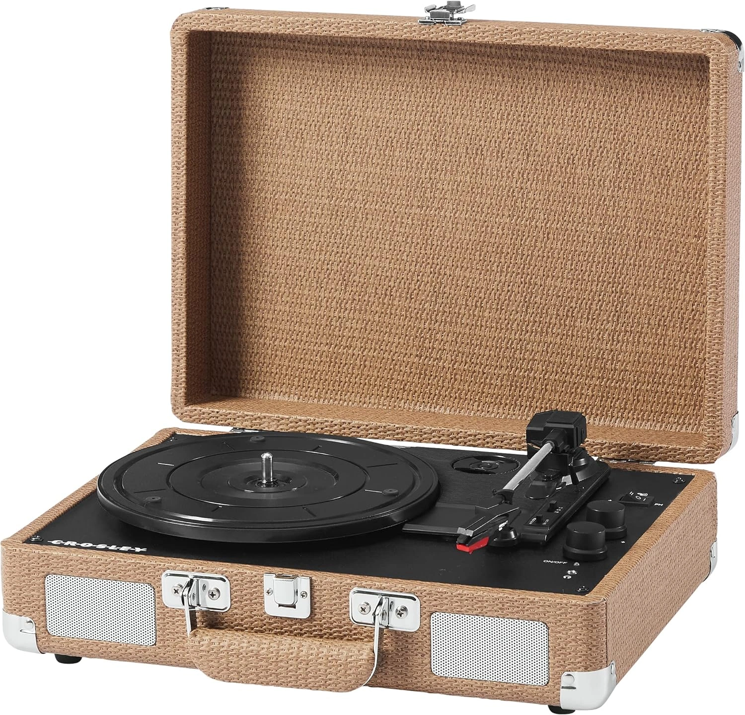 The Crosley Cruiser Plus vinyl player in a classic black leather finish with red velvet inside will be a beautiful accessory in your room.