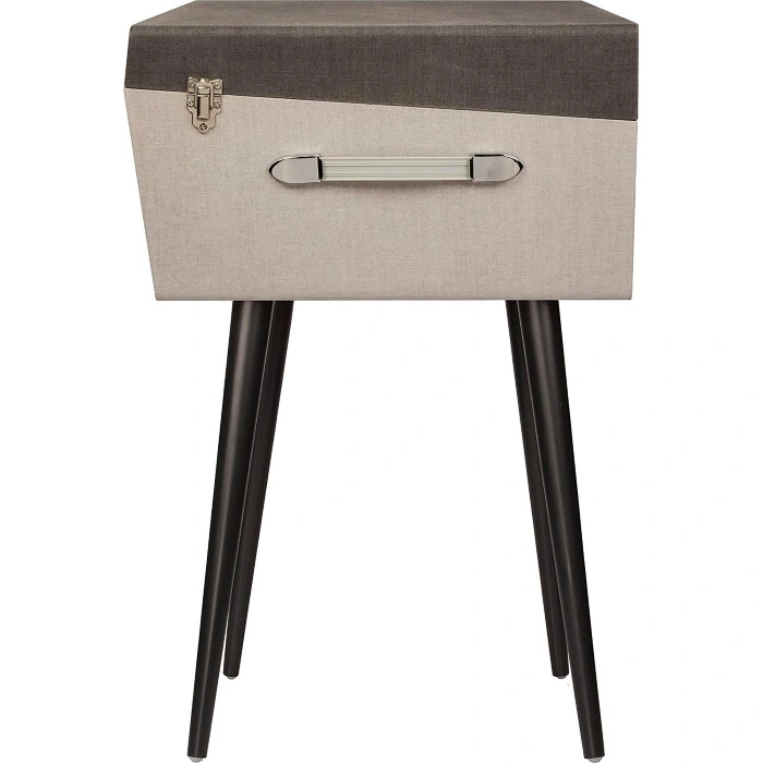 The CROSLEY DANSETTE BERMUDA vinyl turntable with Bluetooth features a unique retro design inspired by the 1960s. The combination of design and sound creates a cozy atmosphere in your home. The turntable mechanism is driven by a belt drive system and is capable of playing vinyl records at speeds of 33 1/3 RPM and 45 RPM with the ability to adjust the speed accurately by +/- 10% using the Pitch Control knob. The curved tonearm is designed to accommodate the Audio Technica Crosley NP5 magnetic cartridge with a conical stylus. It comes with a volume control knob and a signal source switch. The terminals include a 3.5mm headphone jack, RCA output connectors, and a line input jack. You can also connect your device via Bluetooth 4.1.