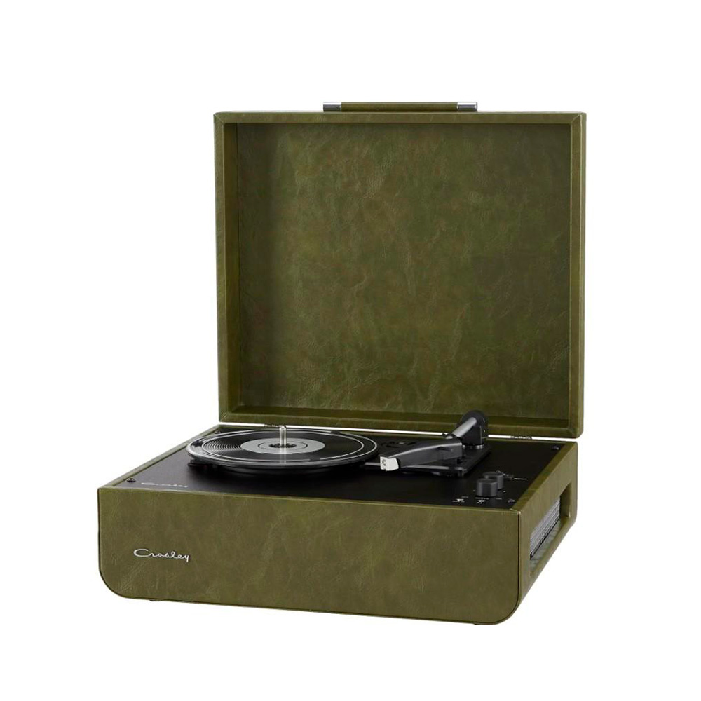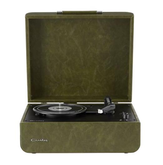 Introducing the new Mercury record player, featuring earth tones that complement our collection perfectly. The round shape of this player creates a welcoming atmosphere for enjoying your favorite records. Crosley has added a touch of luxury to this record player by combining textured fabric with silver and gold hardware. This compact briefcase design record player comes equipped with a NP-15 diamond needle and 2-way Bluetooth connectivity for personalized sound adjustment.