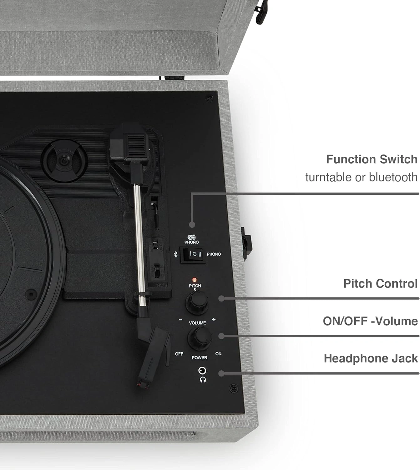 The Bluetooth-enabled vinyl player allows you to listen not only to records but also to connect digital devices. Using the AUX input and RCA connector, you can connect any headphones to the device. The speakers with a total power of 10 watts will deliver a pleasant, soft sound. The option to connect additional headphones will be a great solution if the native sound is not enough.