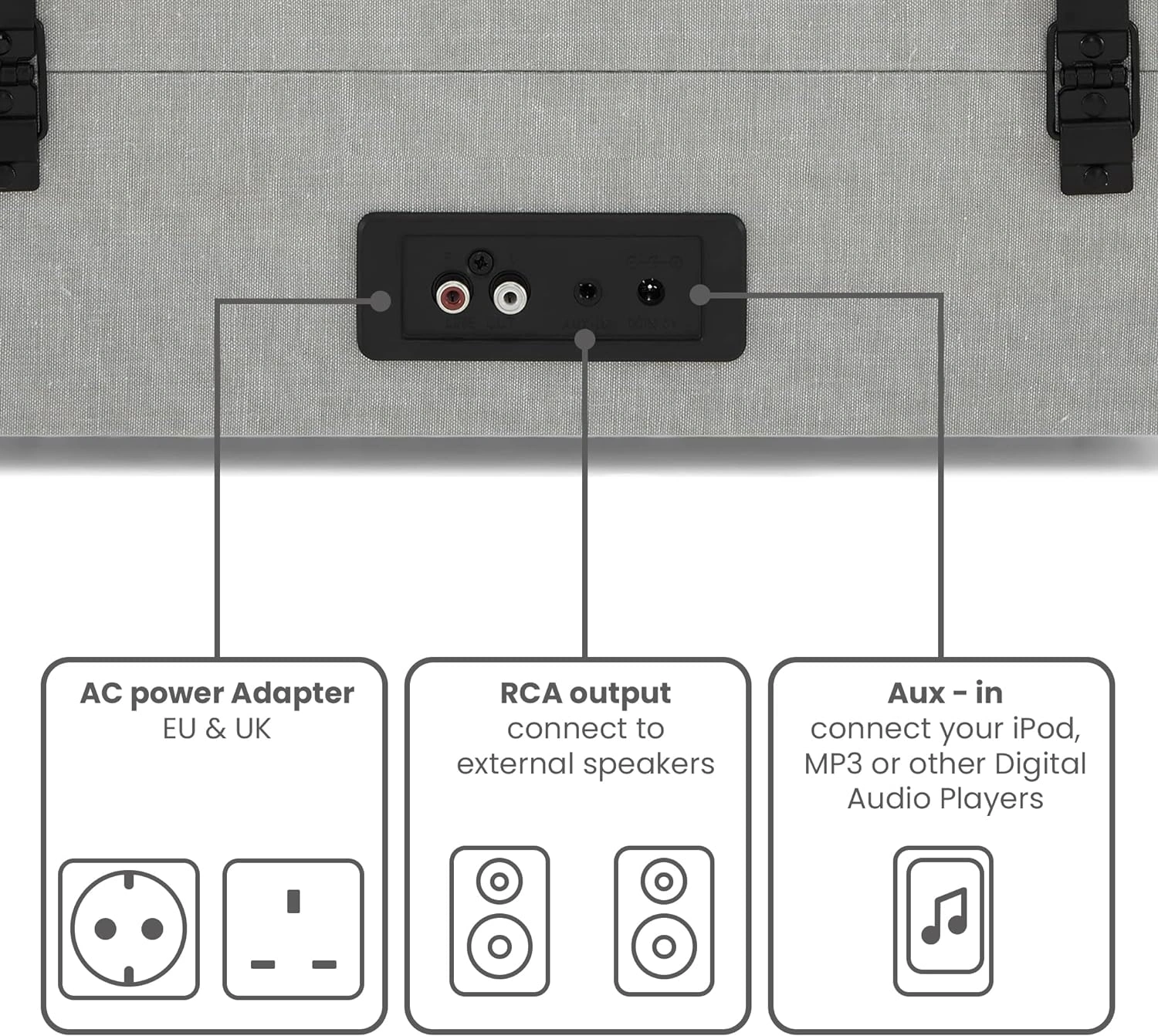 - Supported speeds: 33 1/3, 45, 78 RPM