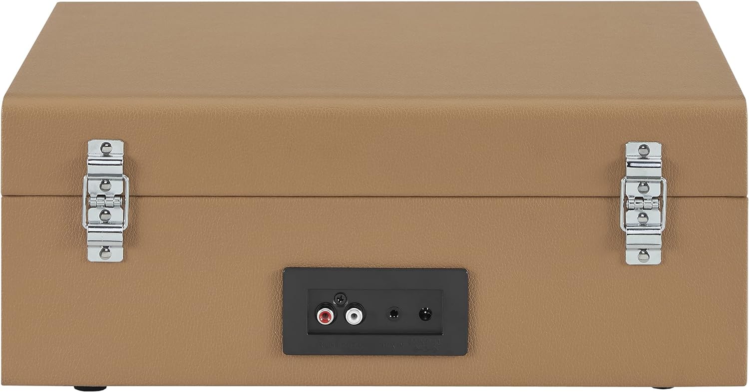 - vintage-inspired, belt-driven 3-speed turntable; plays 33 1/3, 45, and 78 RPM record;
