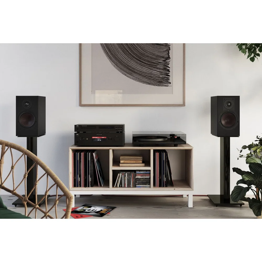 The DALI CONNECT M-601 stand is equipped with an upgraded cable organizer optimized for active speakers, allowing you to hide cables, including power cords. It is ideal for active speakers such as CALLISTO 2 C or RUBICON 2 C. The Stand M-601 is an incredibly elegant solution. The extruded rail, mounted on a sturdy glass base, is finished with a painted metal top panel.