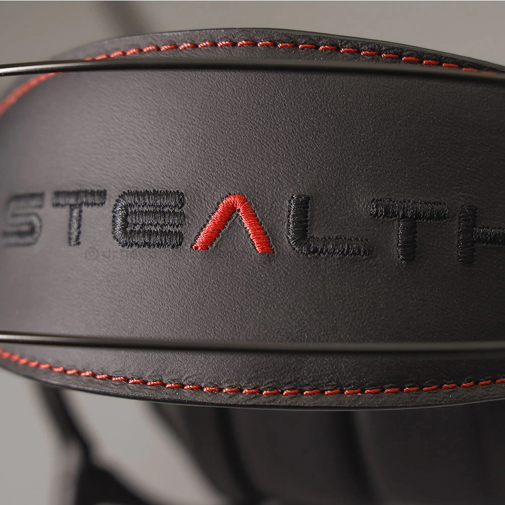 The name Stealth is closely associated with the design of stealth military aircraft and is taken to the level you expect from the best luxury cars. The subtle red stitching on the leather headband creates the feeling of quilted straps that are not only magnificent but also functional and comfortable. The embroidered Stealth logo adds contrast and luxury to the headphones' all-black aesthetic. The self-adjusting suspension system, without mechanical sliders, correctly positions the headphones on the head.