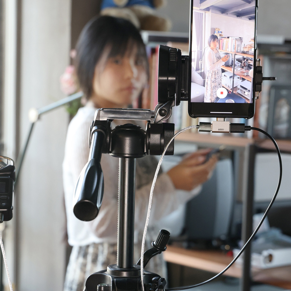 When connecting an Android phone to a USB-C audio decoding device, the two-sided connector design makes the overall connection more compact. For example, when shooting videos, an external microphone and a power adapter can be connected simultaneously without interfering with each other.