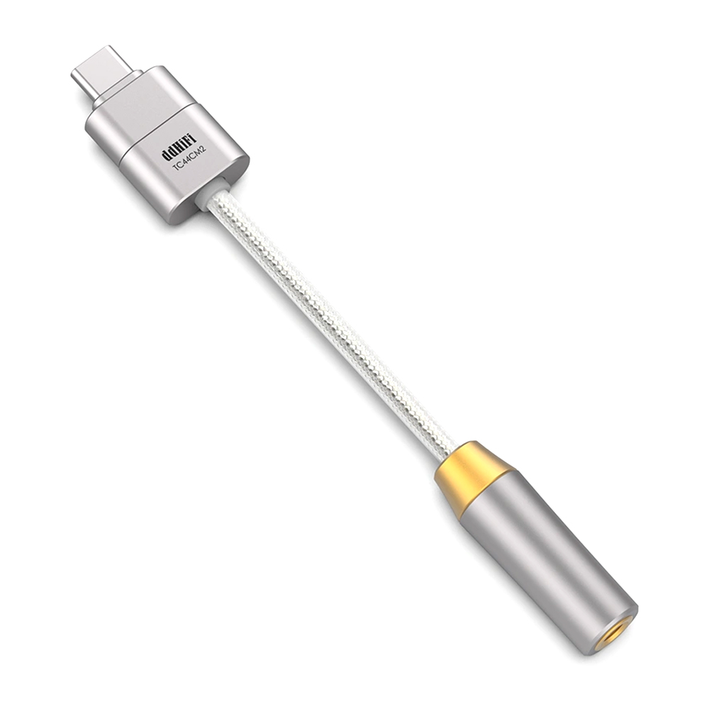 The TC44CM2 features a traditional short cable design. This cable connects to the USB-C port of your mobile device, then to the balanced 4.4mm interface for connecting wired headphones or audio equipment. The USB-C connector has a high level of integration, with an independent DAC and two headphone amplifier chips ES9603Q built-in.